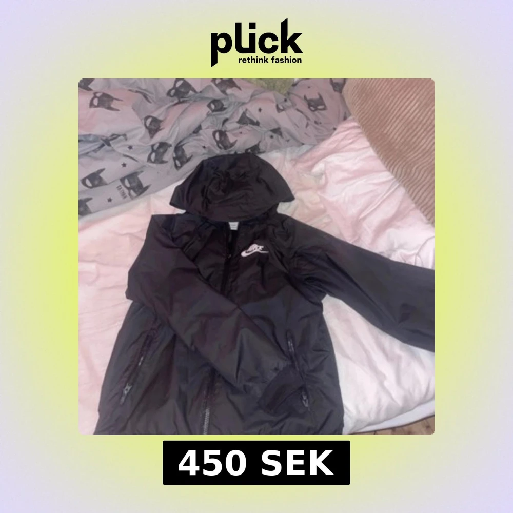 Svart Nike vindjacka med huva och dragkedja framtill. Jackan har två fickor med dragkedja, ribbade muddar och meshfoder på insidan. Klassisk Nike-logga på bröstet och sportig look. Perfekt för dig som gillar streetwear och enkel stil.