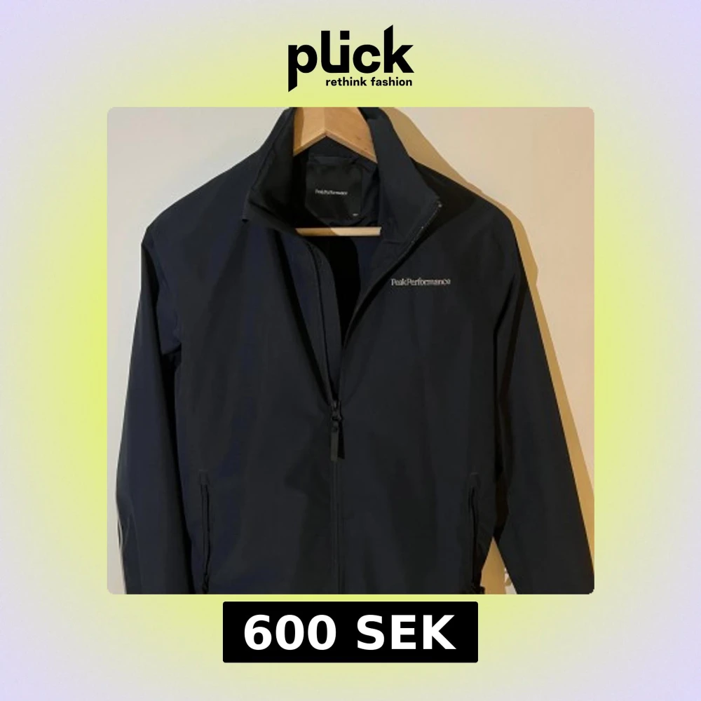 Snygg svart vindjacka från Peak Performance passar folk runt 160cm lång
