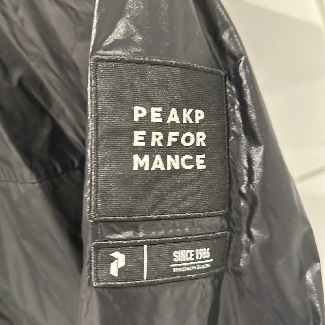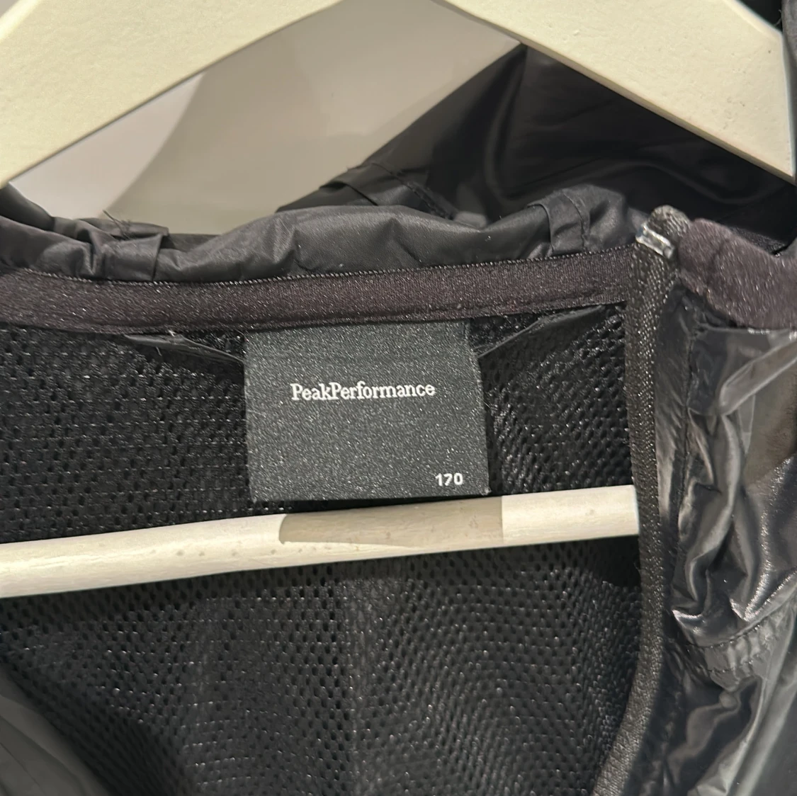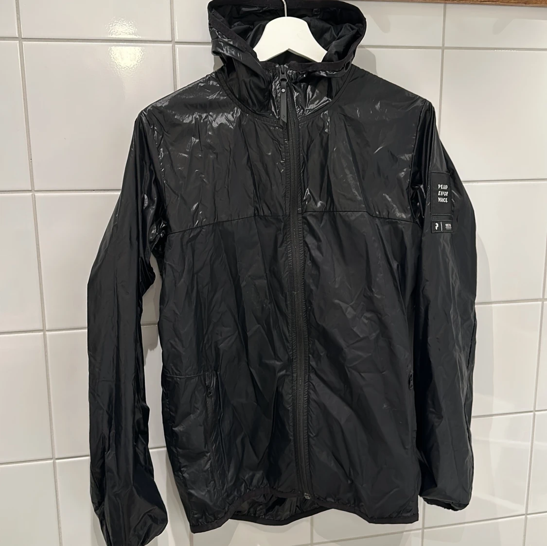 Säljer en svart vindjacka från Peak Performance i mycket bra skick. Jackan har en praktisk huva och dragkedja framtill. Perfekt för blåsiga dagar och passar bra till både vår och höst. Stilren design med Peak Performance-logga på ärmen. Stl 170
