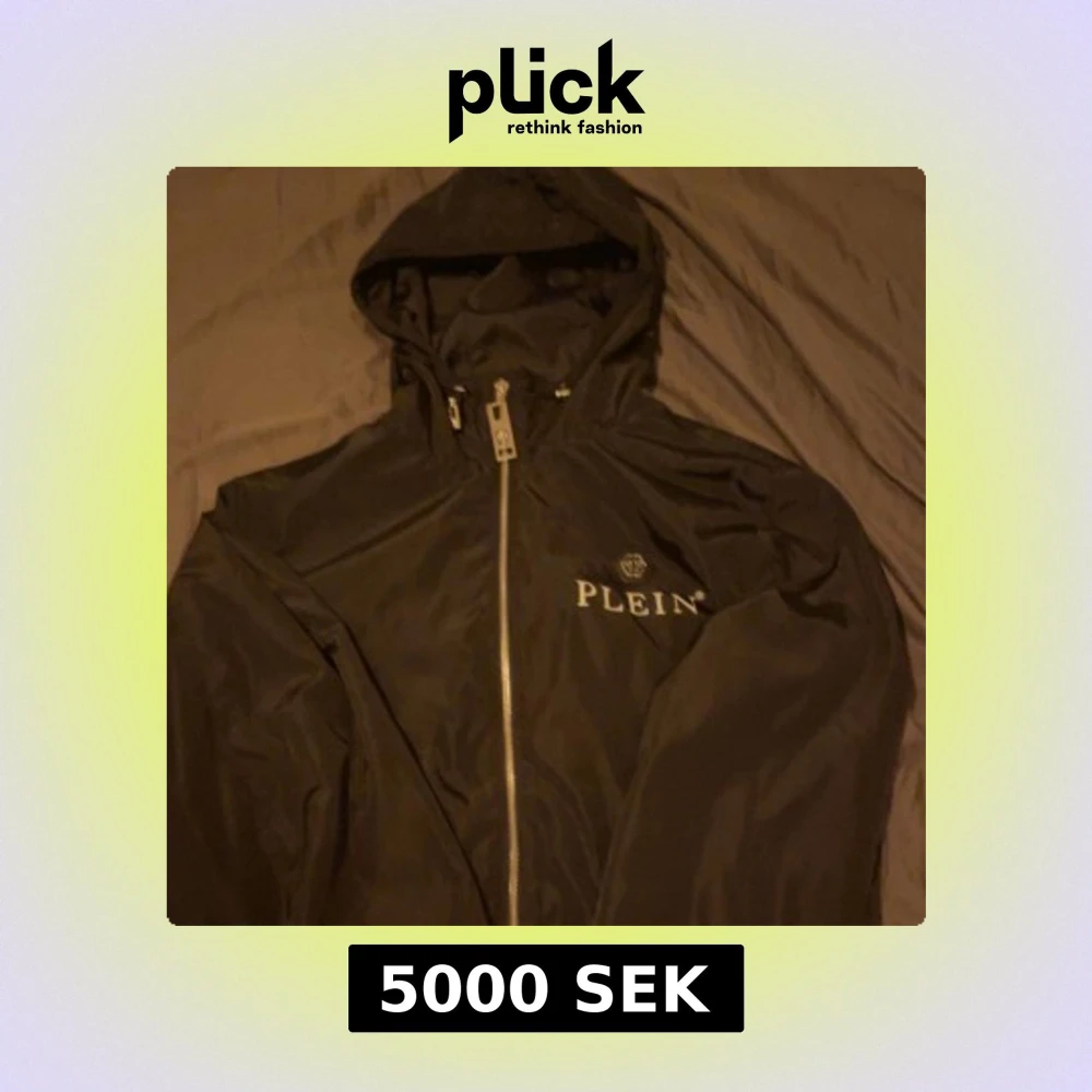 Snygg svart vindjacka från Philipp Plein med huva och dragkedja framtill. Perfekt för blåsiga dagar och har en stilren design med logotyp på bröstet. Storlek S men passar M. Den är köpt i Spanien, kvitto samt påse kommer med.
