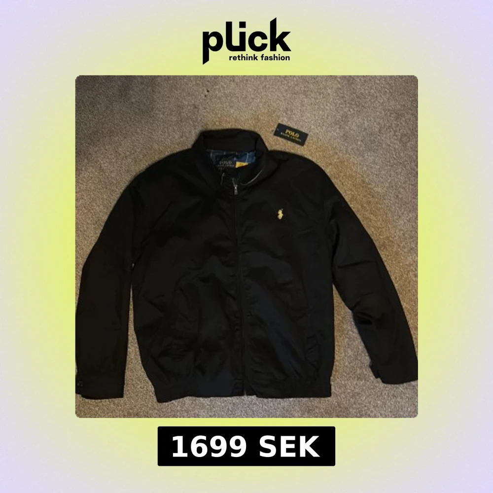 Svart jacka från Polo Ralph Lauren med klassisk gul broderad logga på bröstet. Jackan har dragkedja framtill, ståkrage och två sidofickor. Insidan är fodrad med rutigt tyg. Passar S/M i storlek. Ny pris 3000kr mitt pris 899