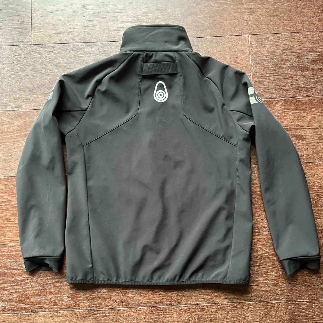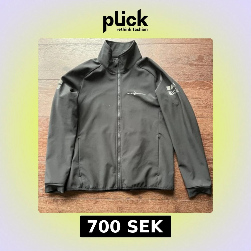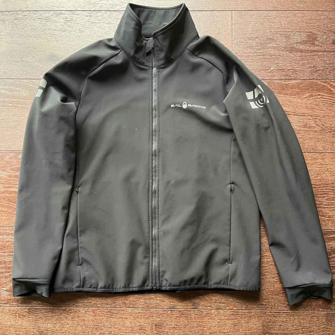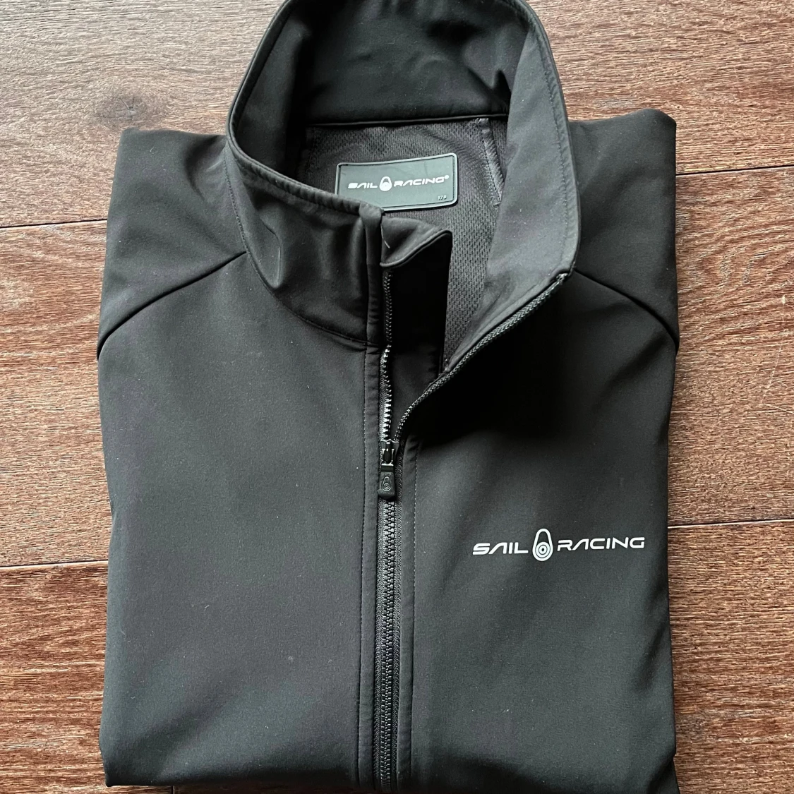 Svart vindjacka från Sail Racing med hög krage och hel dragkedja framtill. Jackan har diskreta loggor på bröstet, ärmen och ryggen. Jackan har strl 170 men är som en XS. Sonen som haft den var 170-170 cm när han kunde ha den.