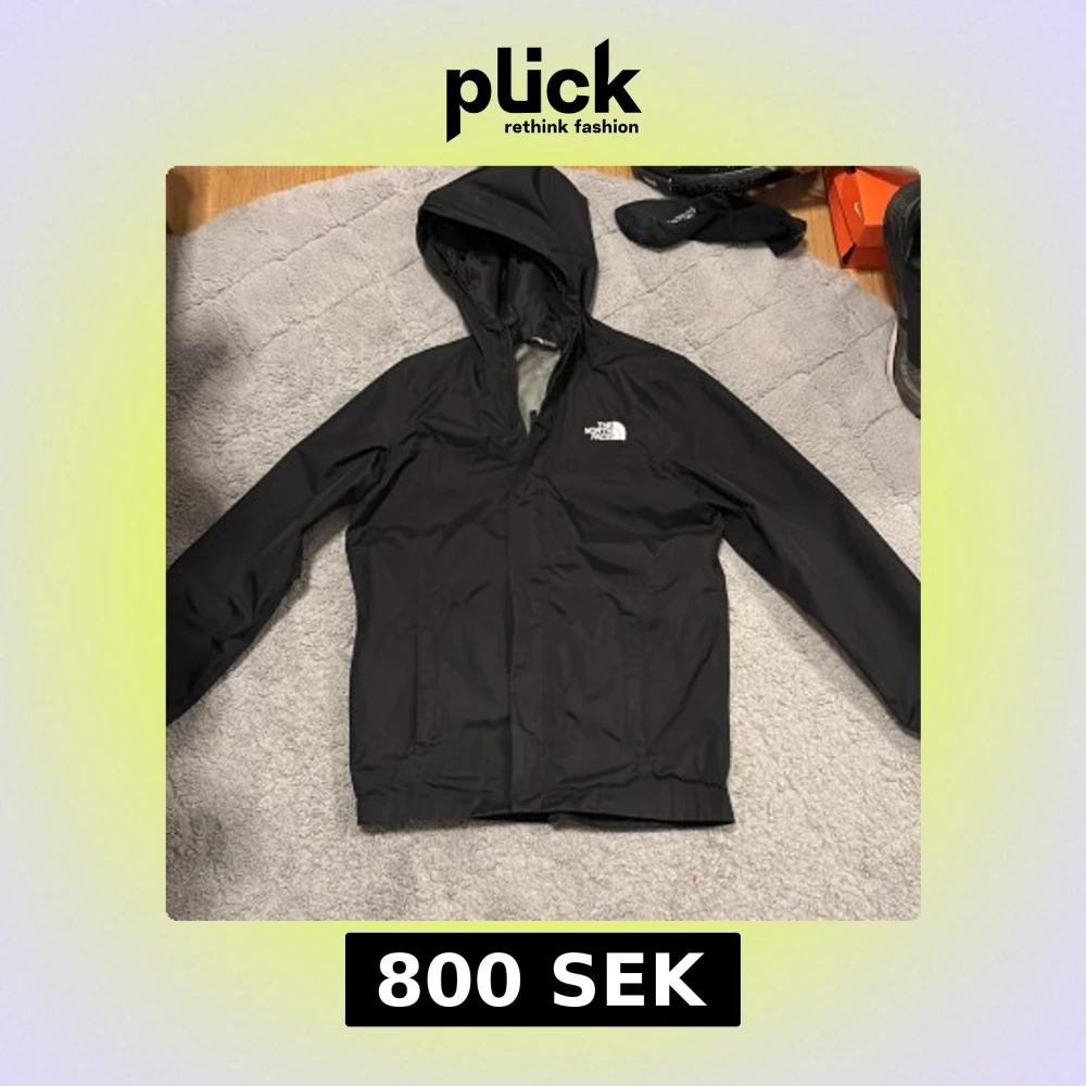 Säljer en svart vindjacka från The North Face med huva och dragkedja. Jackan har en stilren design med logotyp på bröstet. Perfekt för blåsiga dagar och lätt att packa med sig. Priset kan ändras vid snabb affär