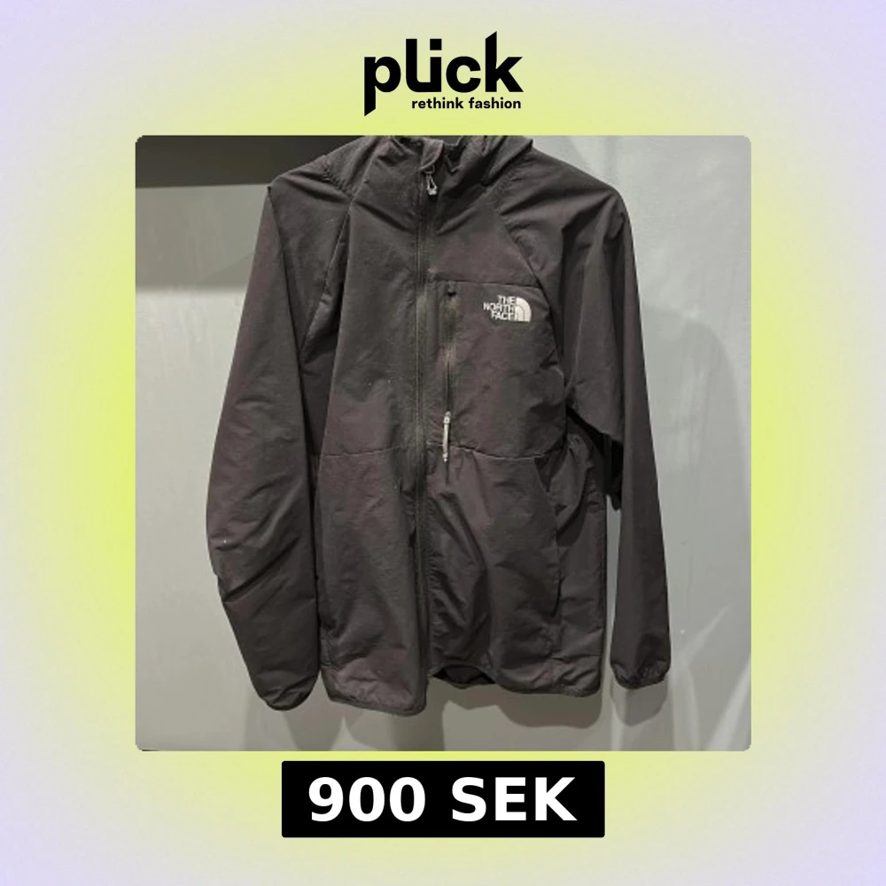 Säljer en svart vindjacka från The North Face med dragkedja och huva. Jackan har en enkel design med logotyp på bröstet och är perfekt för blåsiga dagar. Den har långa ärmar och praktiska fickor framtill.