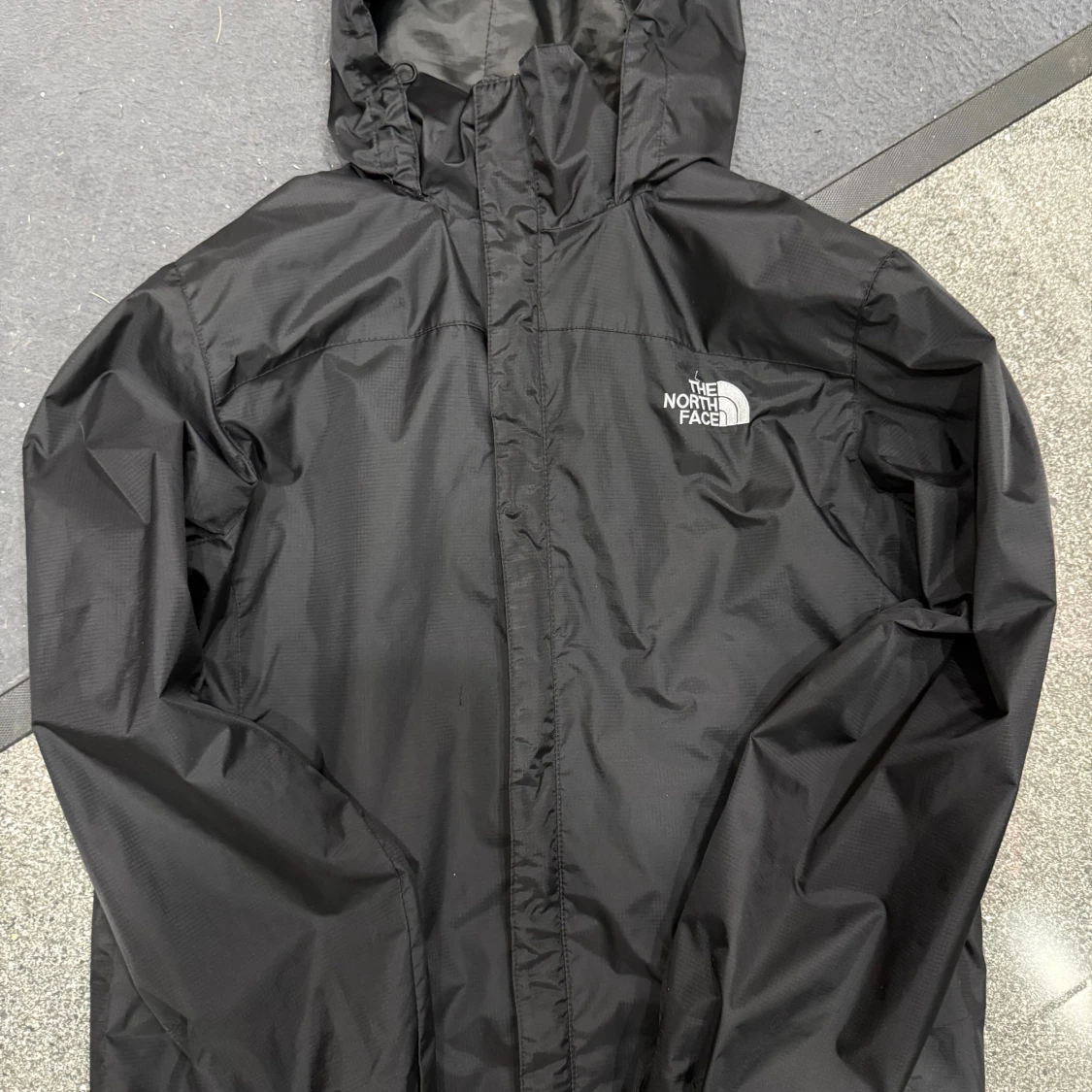 Svart vindjacka från The North Face med huva och logga på bröstet. Jackan har en stilren design med dragkedja framtill och är tillverkad i lätt polyester som står emot vind och regn. Perfekt för dig som gillar outdoor och streetstyle.
