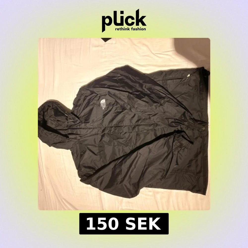 Svart vindjacka från The North Face med huva och dragkedja. Jackan har logga på bröstet och bak. Perfekt för blåsiga dagar och enkel att packa ner i väskan. Snygg och funktionell design med justerbar nederkant.