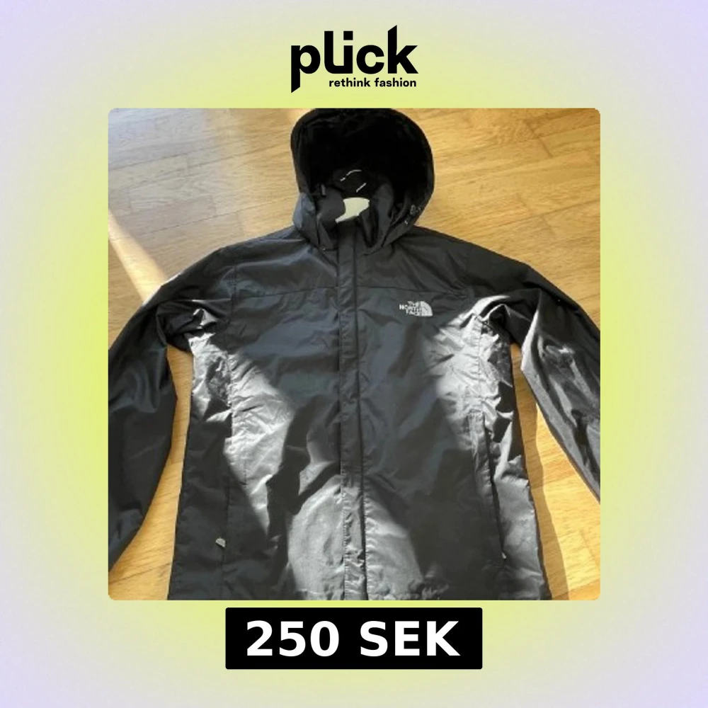 Säljer en svart vindjacka från The North Face Summit Series med huva och dragkedja. Jackan har en stilren design med logga på bröstet och är perfekt för blåsiga dagar. Passar dig som gillar funktionella och snygga ytterplagg. Vid funderingar ställ frågor👍
