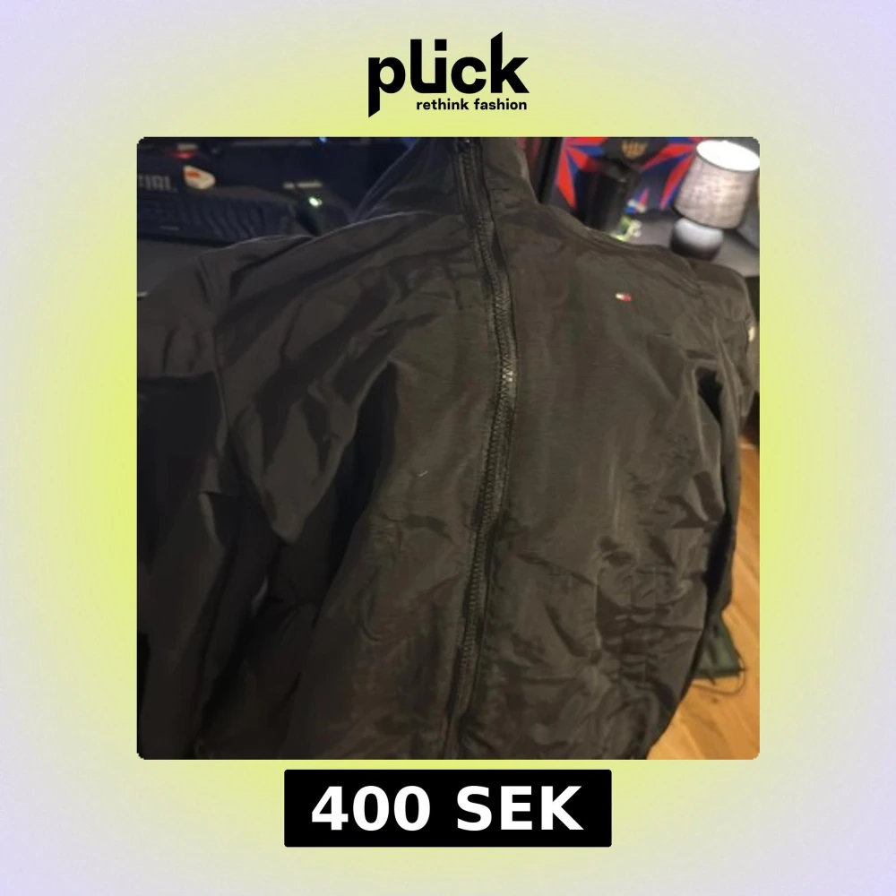 Säljer en stilren svart vindjacka från Tommy Hilfiger. Jackan har en dragkedja framtill och det ikoniska logotypmärket på bröstet. Perfekt för blåsiga dagar och en snygg detalj i garderoben.