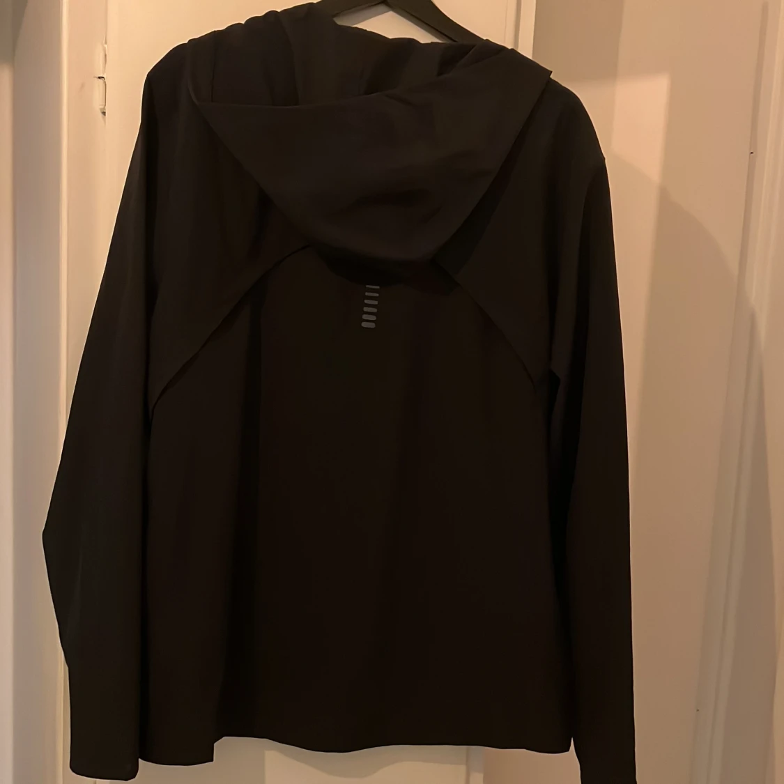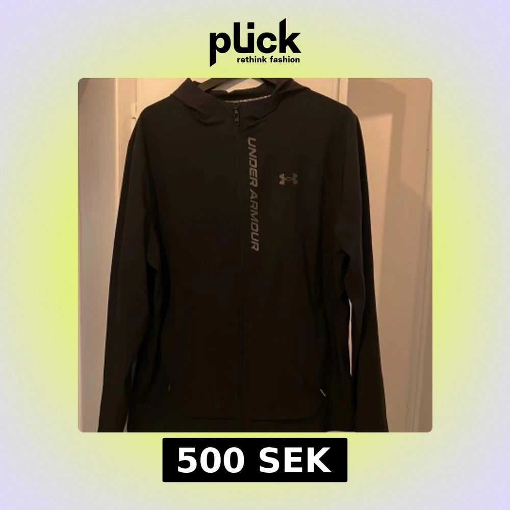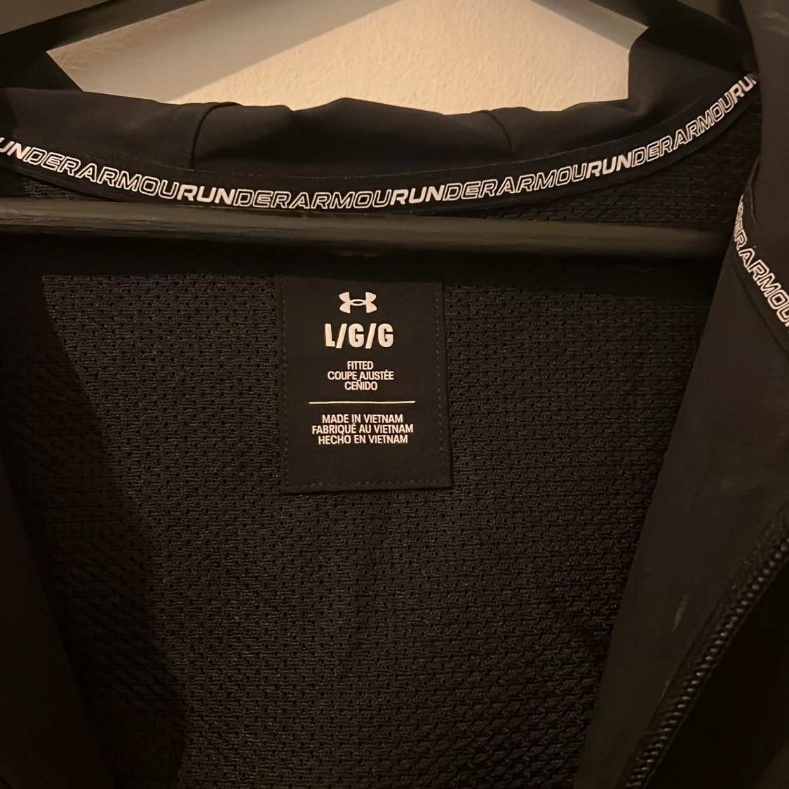 Svart vindjacka från Under Armour med huva och hel dragkedja framtill. Jackan har logga och text längs dragkedjan, samt meshfoder på insidan för extra komfort. Perfekt för träning eller när du vill ha en sportig look.