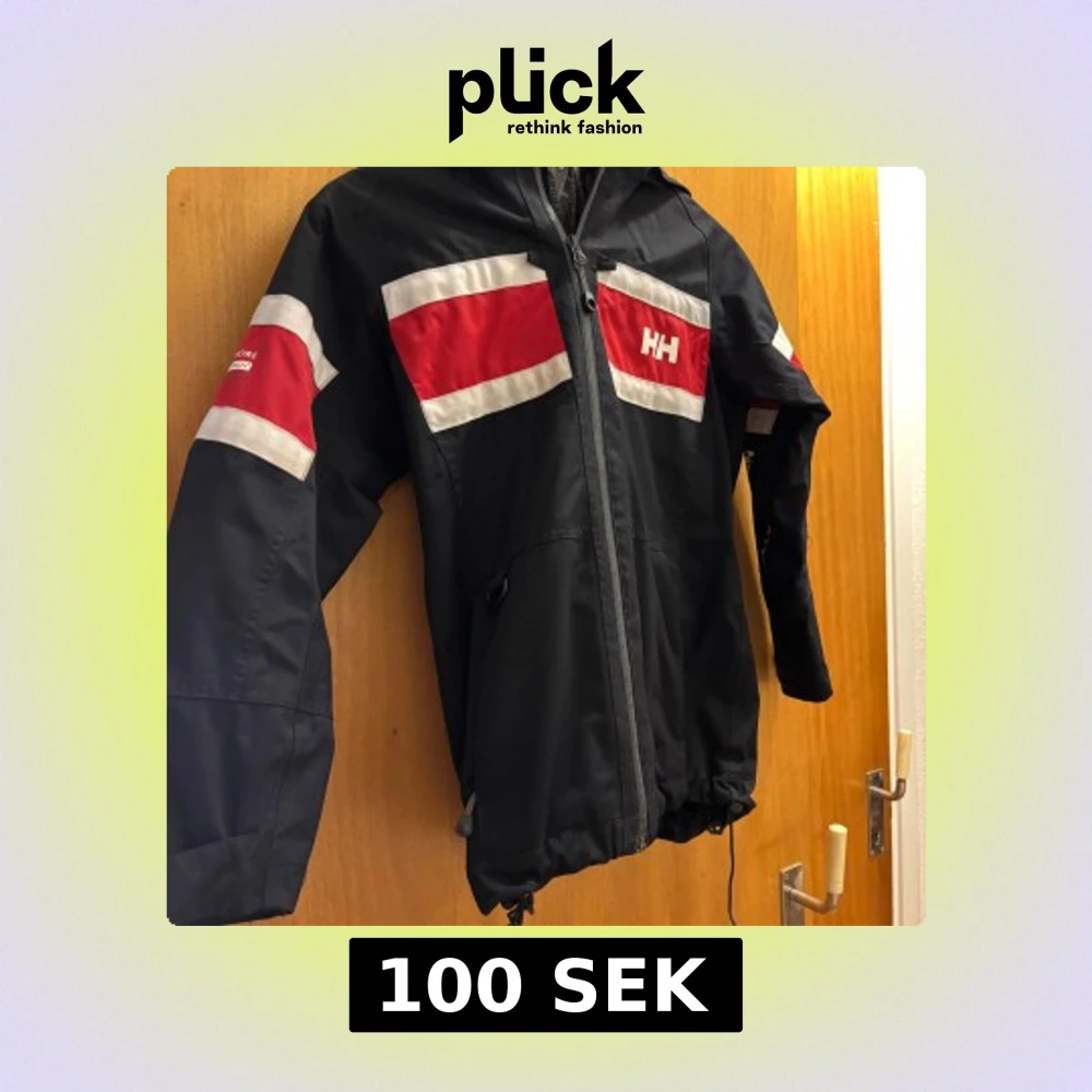 Svart Helly Hansen Jackan har huva, hel dragkedja framtill och justerbar nederkant. Ett resårband trasigt nederkant
