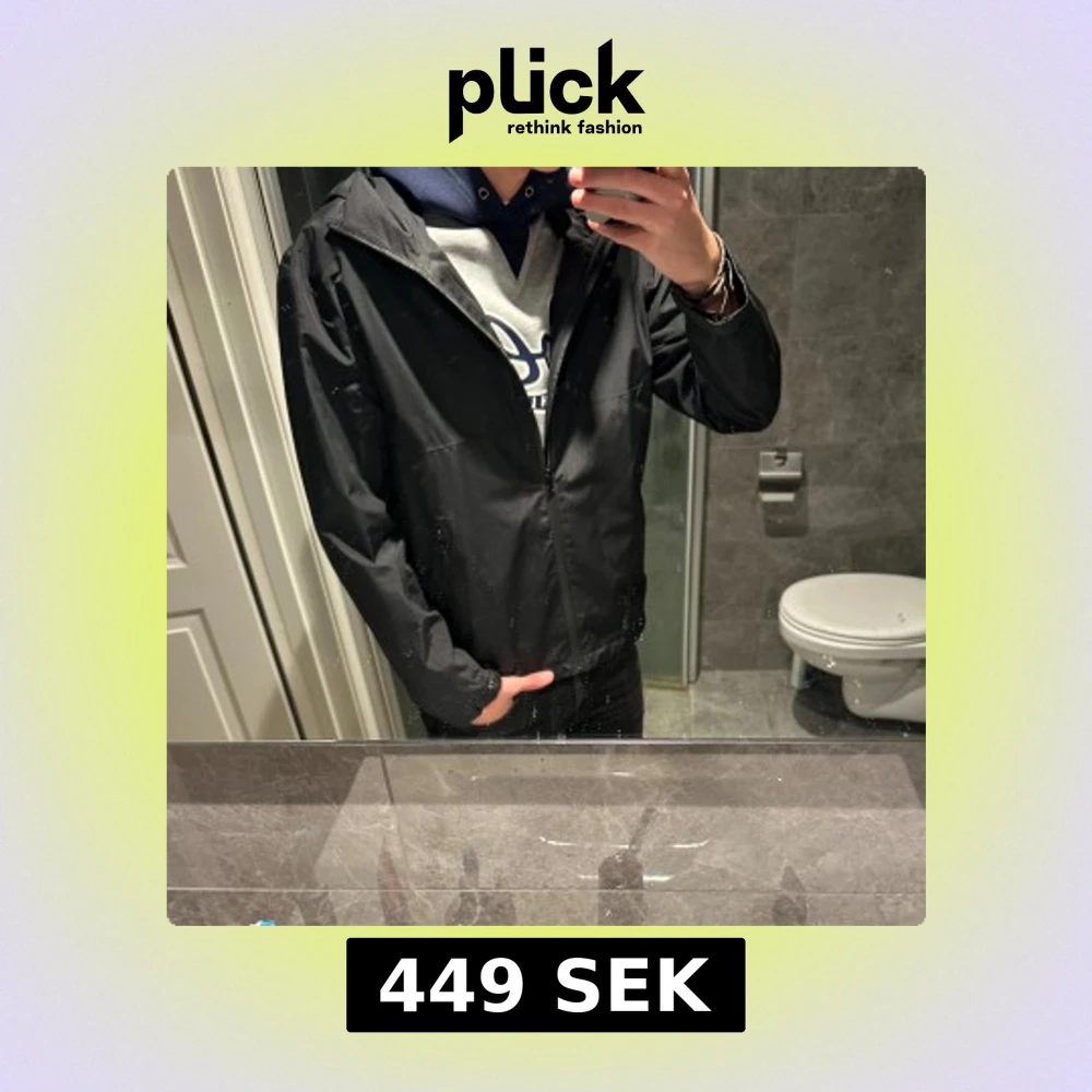 Svart vindjacka med huva och dragkedja framtill. Riktigt snygg och praktisk. Jackan är i storlek S/M. Den är i riktigt bra skick. Hör av er vid funderingar:)