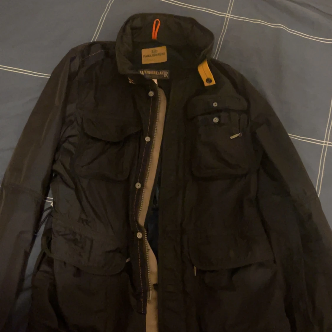 Svart vindjacka från Parajumpers med flera praktiska fickor, dragkedja och knappar framtill. Jackan har coola orange detaljer och meshfoder på insidan för extra ventilation. Perfekt för dig som vill ha en funktionell och snygg jacka med streetkänsla.