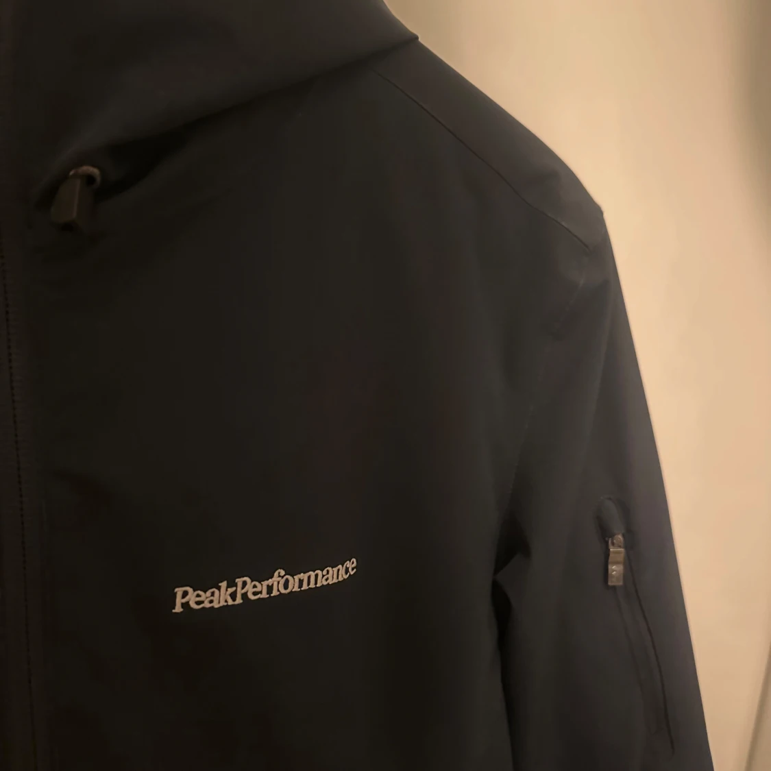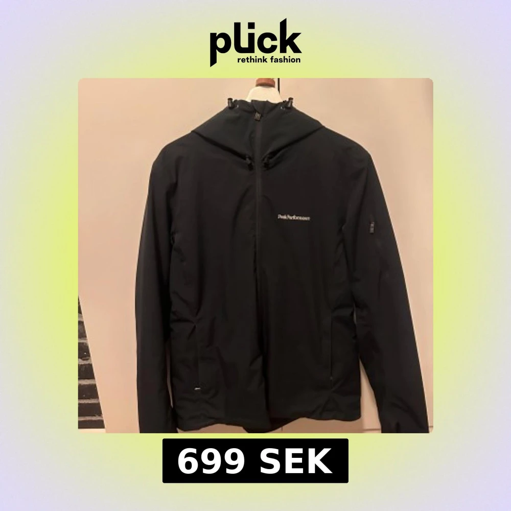 Snygg svart vindjacka från Peak Performance med stilren design och diskret logga på bröstet. Jackan har huva med snörning, hel dragkedja framtill och praktiska fickor med dragkedja. Perfekt för dig som gillar sportig och clean look.