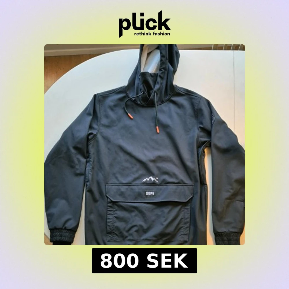 Säljer en svart vinterjacka från Dope med huva och stor ficka framtill. Jackan har långa ärmar och en cool logga på bröstet. Materialet är en blandning av nylon och spandex vilket gör den både bekväm och stretchig. Perfekt för kyliga dagar! ❄️
