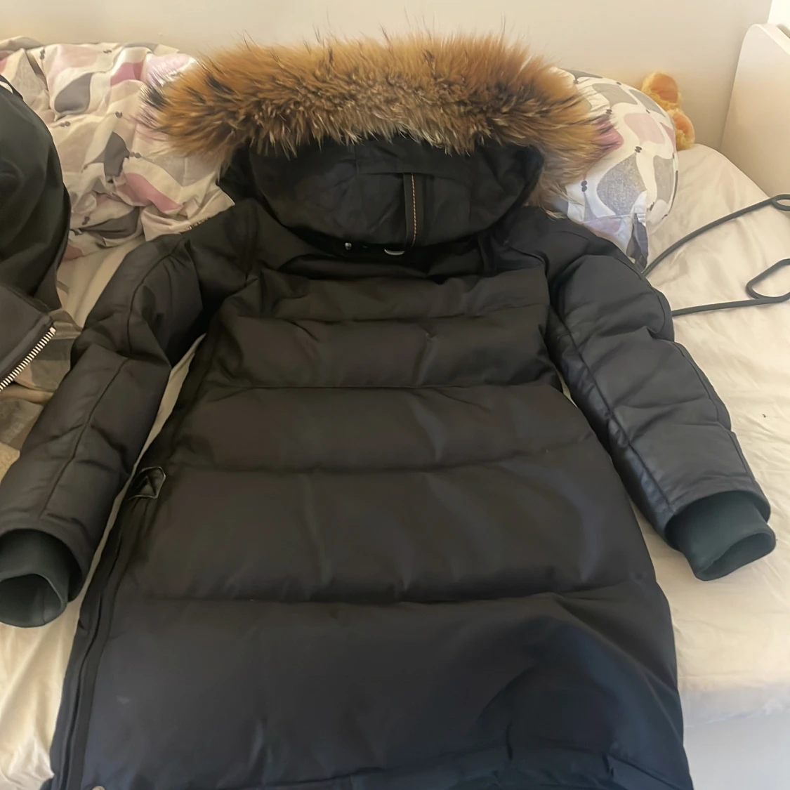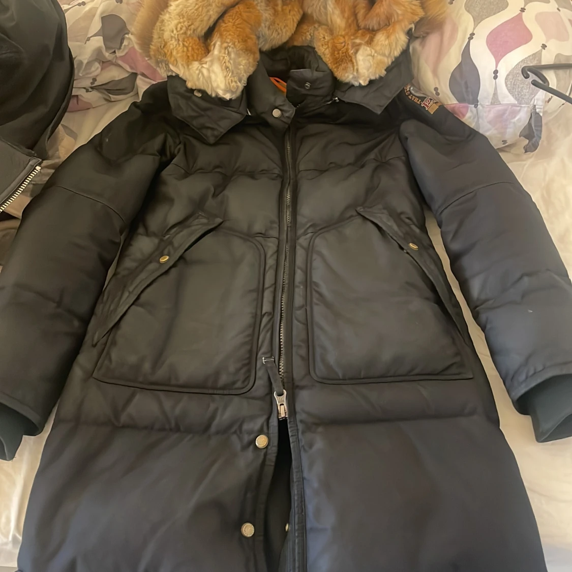 Säljer en svart lång vinterjacka från Parajumpers i storlek XSS. Jackan har dragkedja, knappar och två stora fickor framtill samt en gul detalj på ärmen. Perfekt för kalla vinterdagar. Den är bara använd en vinter. Den är i bra skick!