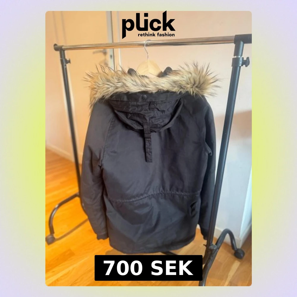 Snygg svart parkajacka från Replay med huva och fuskpälsdetalj. Jackan har flera fickor, knappar och dragkedja framtill samt ribbade muddar vid ärmslut. Extremt bra skick, endast använt vid enstaka tillfällen.