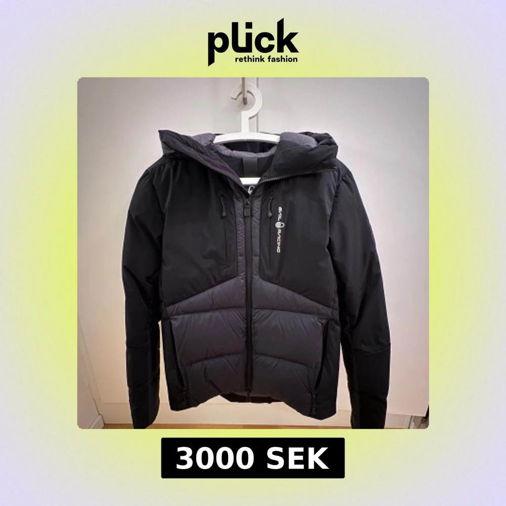 Snygg svart dunjacka från Sail Racing med huva och dragkedja. Jackan har en quiltad design och är perfekt för kyliga dagar. Den har en logotyp på bröstet och en på ärmen. Insidan är grå och jackan har flera praktiska fickor. Storlek XS men passar även S. Nypris 5000kr