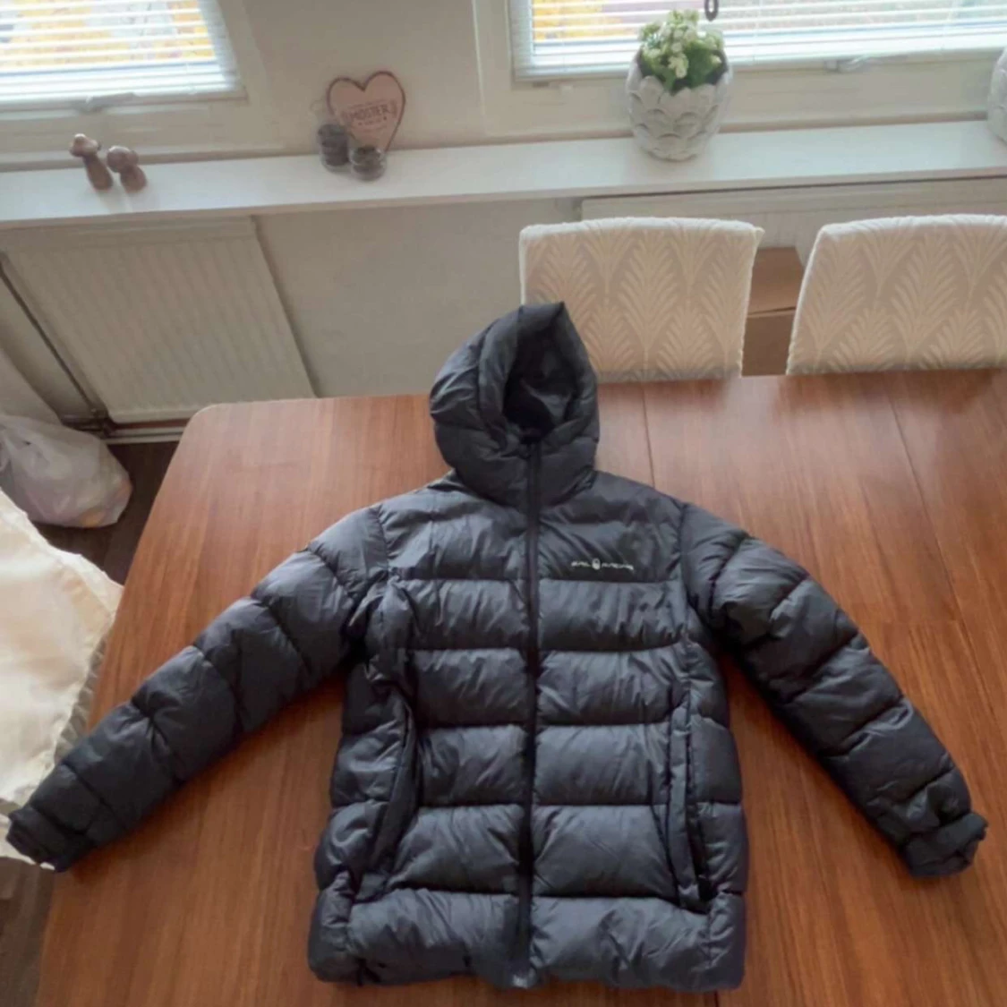 Säljer en svart dunjacka från sailracing med huva och dragkedja framtill. Jackan är perfekt för vintern och är riktigt varm. Jackan har bra kvalité. Storlek 176
