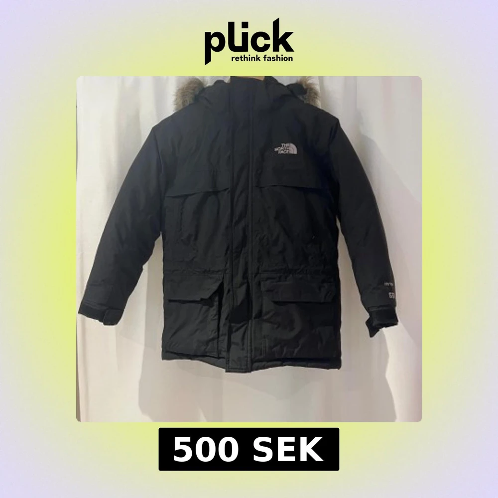 Svart barnparka (10-12år) från The North Face (Hyvent 550) med fakepäls på huvan. Vadderingen består av återvunnen dun och den avtagbara fuskpälskragen består av akryl och polyester. Yttermaterialet är vatten - och vindavvisande. Jackan har en hög krage och en rejäl dragkedja samt kardborre (en liten del av kardborren har lossnat lite, kan limmas) Perfekt för kalla dagar. Använd av två barn men i dugligt skick! Namnmärkt.