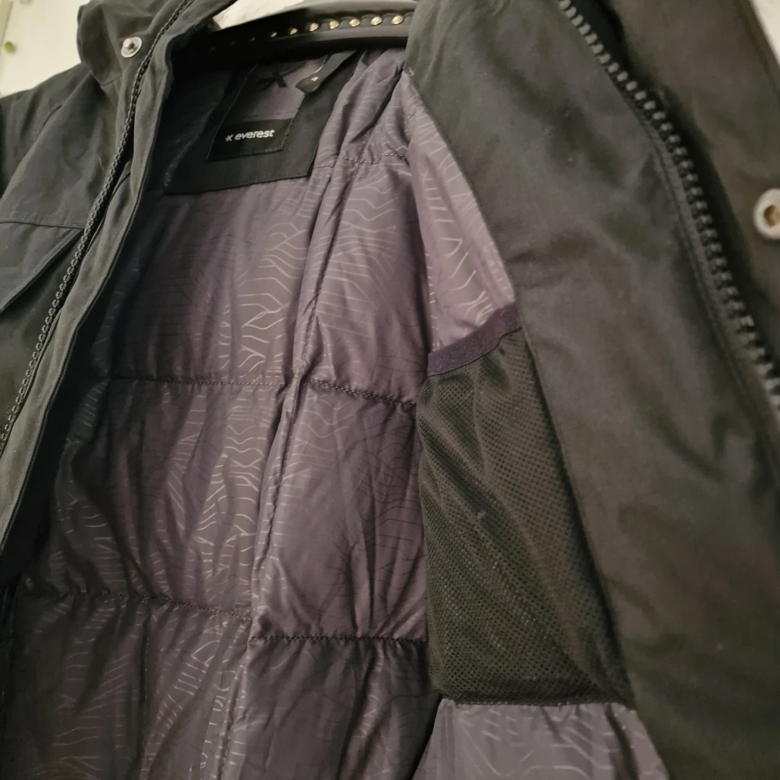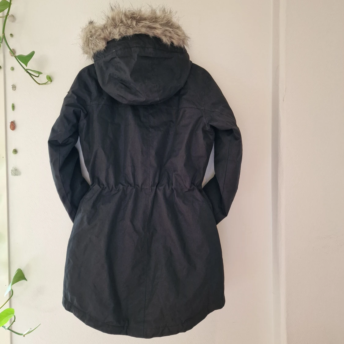 Svart tjock och lång vinterjacka/parkas med avtagbar fakepäls. Polyesterfyllning, så den torkar snabbare och är cruelty free, 6 fickor fram, 1 innerficka och 1 ficka på armen, dragsko i midjan och i nederkant. Perfekt i skidbacken eller bara på kalla dagar. Pga flyttstäd behöver denna hitta ett nytt hem. Använd fåtal gånger, som ny, inga defekter! Mått: Ärm - 53 cm, Axelbredd - 42 cm, Längd - 75 cm. Nypris: 1499:- Everest, damstorlek 36