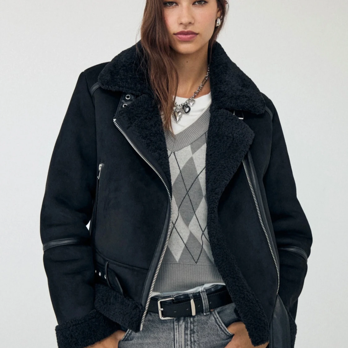 Säljer en snygg svart Zara jacka med fuskpälsdetaljer. Den har en cool bikerstil med dragkedja och bälte i midjan. Perfekt för höst och vinter, håller dig varm och trendig. Jackan har långa ärmar och en skön krage. Passar perfekt till både vardag och fest!