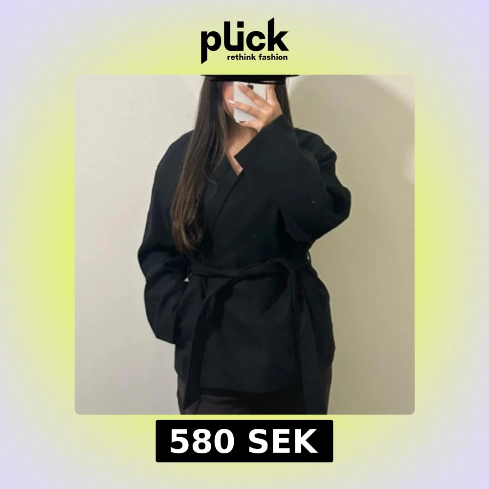Svart Zina kappa från Bik Bok med bälte i midjan och v-ringad hals. Strl S, slutsåld på hemsidan! Ny med prislapp, original priset 699kr. Skriv om flera bilder önskas 🥰