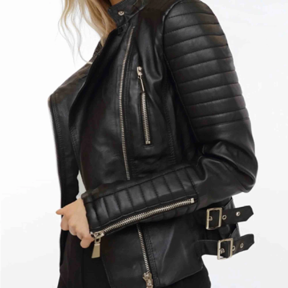 Säljer nu min fina skinnjacka från chiquelle då den blivit för stor för mig ☹️👎🏽 Den är sparsamt använd. Storlek 40. 350 + frakt.