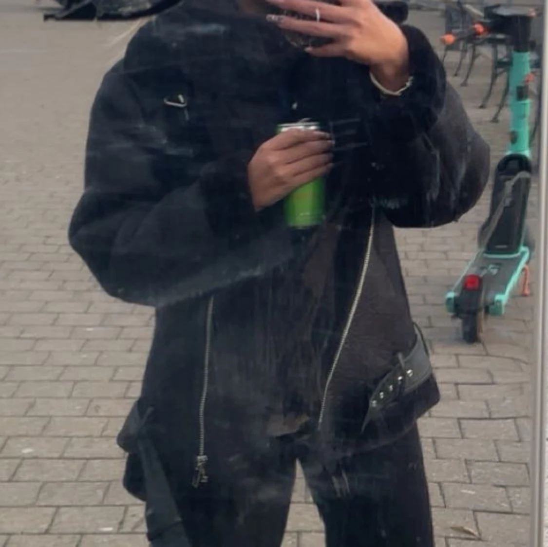 Snygg svart skinnjacka med dragkedjor och bälte i midjan. Jackan är värd 800kr från NAKD och kan gå ner i pris vid snabb affär❤️