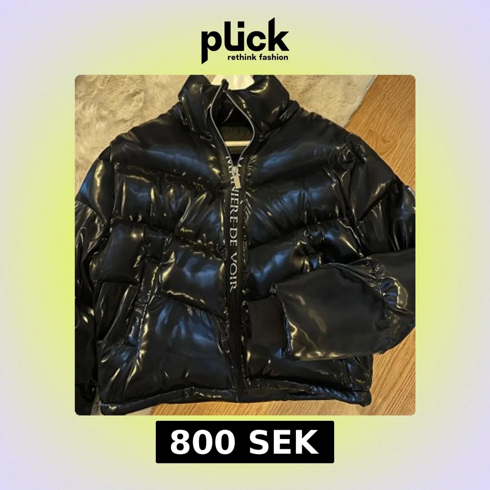 Oanvänd svart pufferjacka från Manière De Voir med glansig finish i storlek 36. En avtagbar luva ingår, men är inte med på bilderna