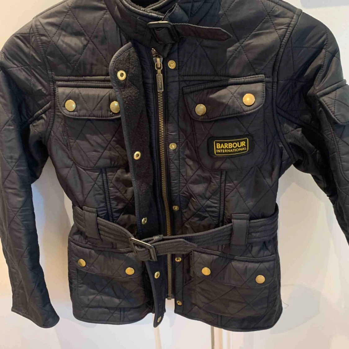 En barn, svart Barbour jacka med bälte i midjan, använd ett antal gånger, men ändå fint skick. Lite knottrig på insidan, men inte något man ser. (Mer bilder ifall ni vill se närmre), storlek M som barn, tycker den passar en 10-12 åring.