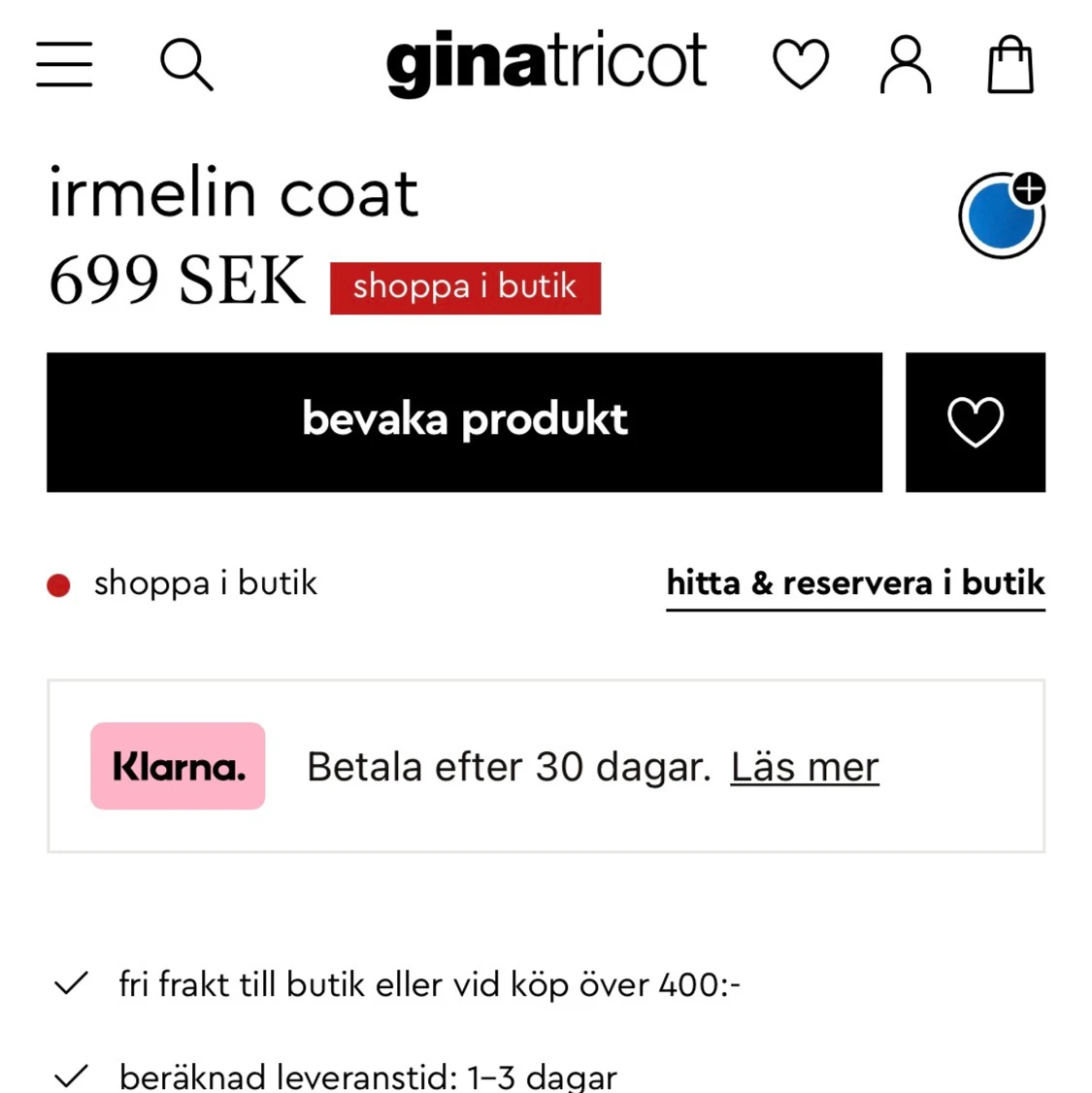 Kappan är i storlek xs och köptes för 3veckor sedan. Har använt den cirka 4ggr sen dess och säljer den endast för att jag tyckte den var för lång för mig. Den är slutsåld i alla Gina butiker och på appen i storlek xs. Mer bilder kan skickas vid intresse!❤️