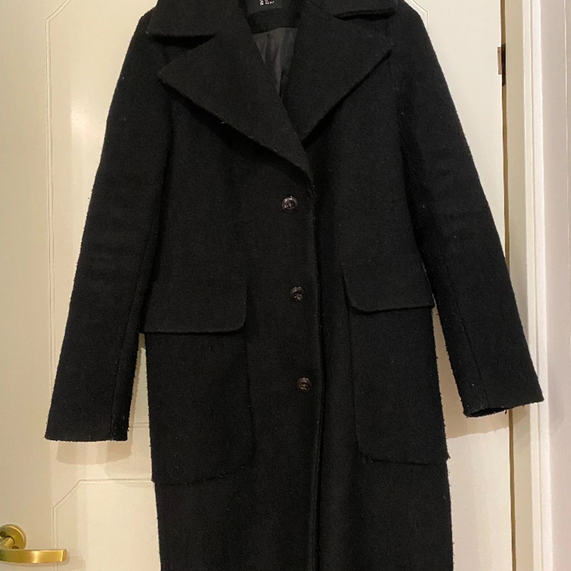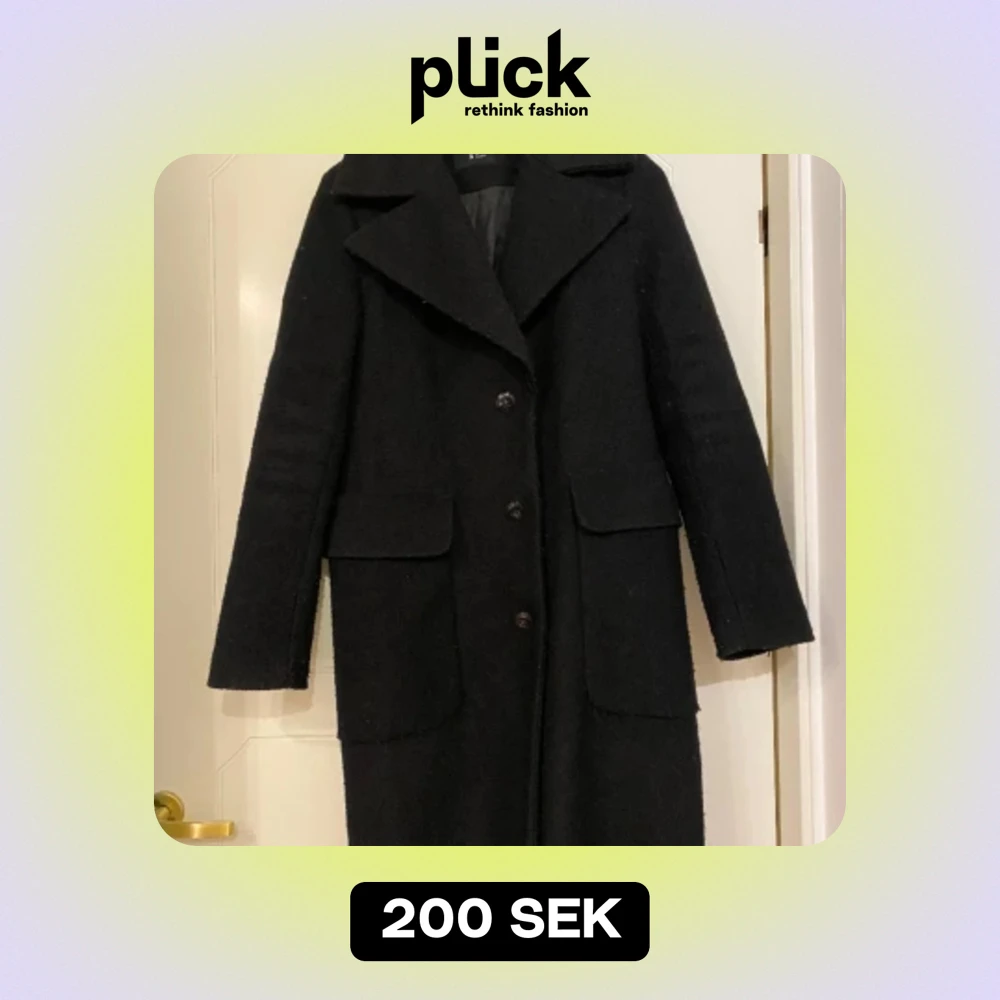Ullblandning med polyester i bouclé effekt. Har gått sönder i lining men går säkert att sy för en billig peng hos skräddare
