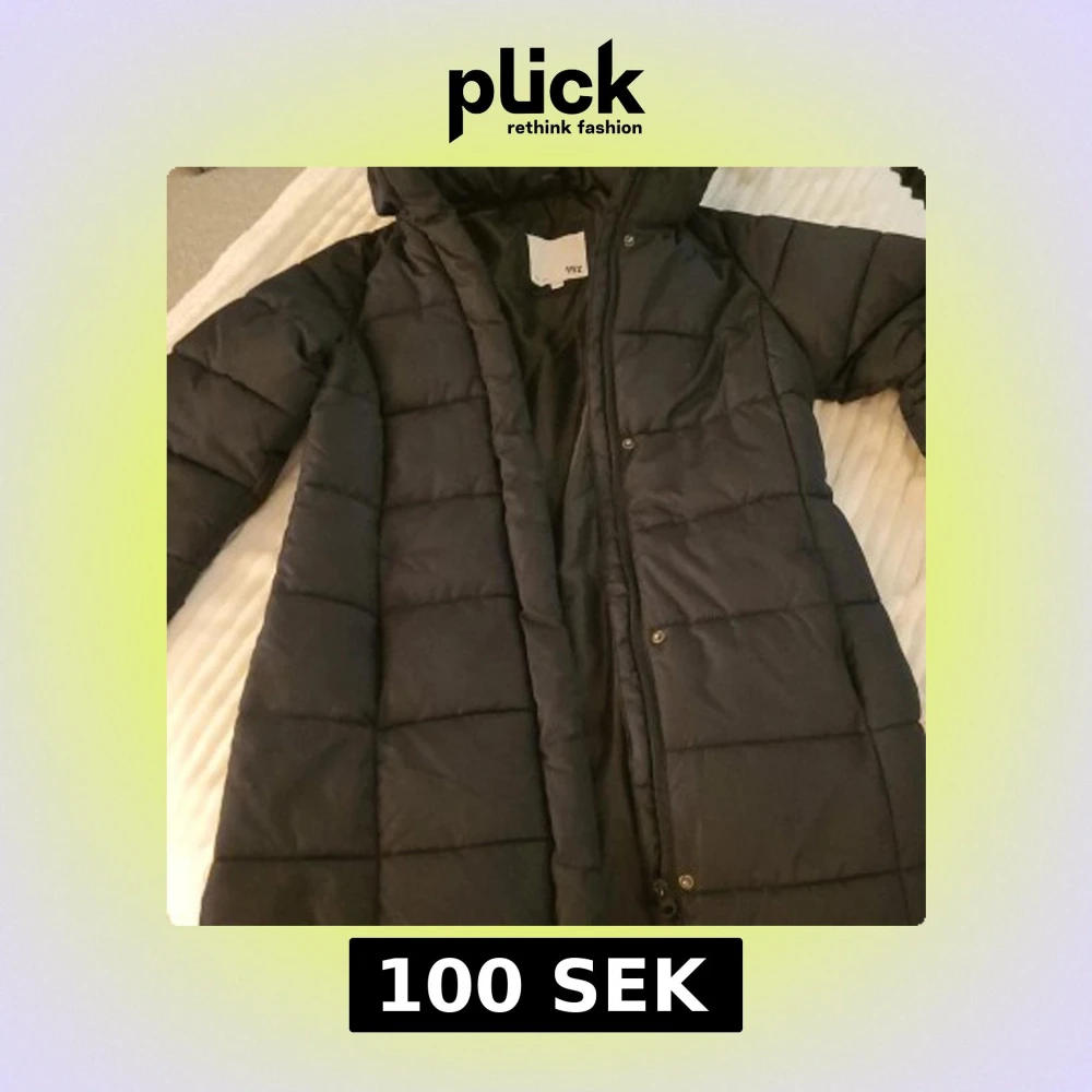 Säljer en svart jacka med huva, perfekt för kalla dagar. Jackan har en dragkedja framtill och är långärmad. Den quiltade designen ger extra värme och stil. Passar utmärkt för vinter och höst. (Barnstorlek 150)