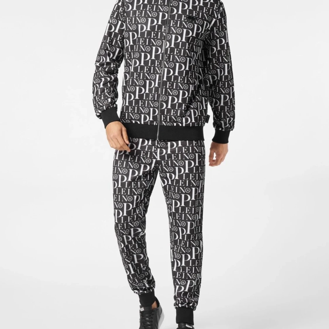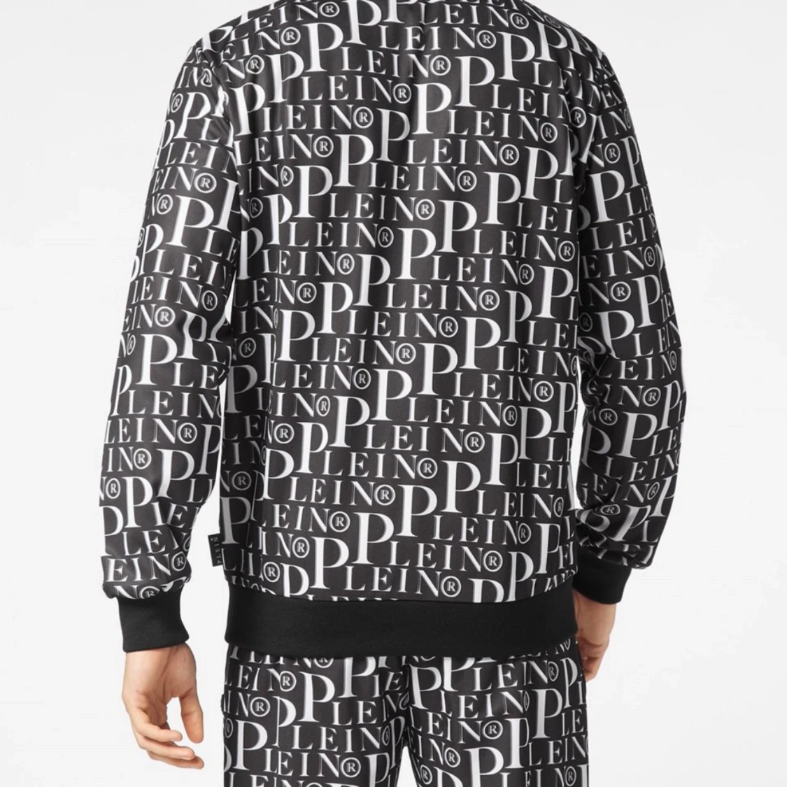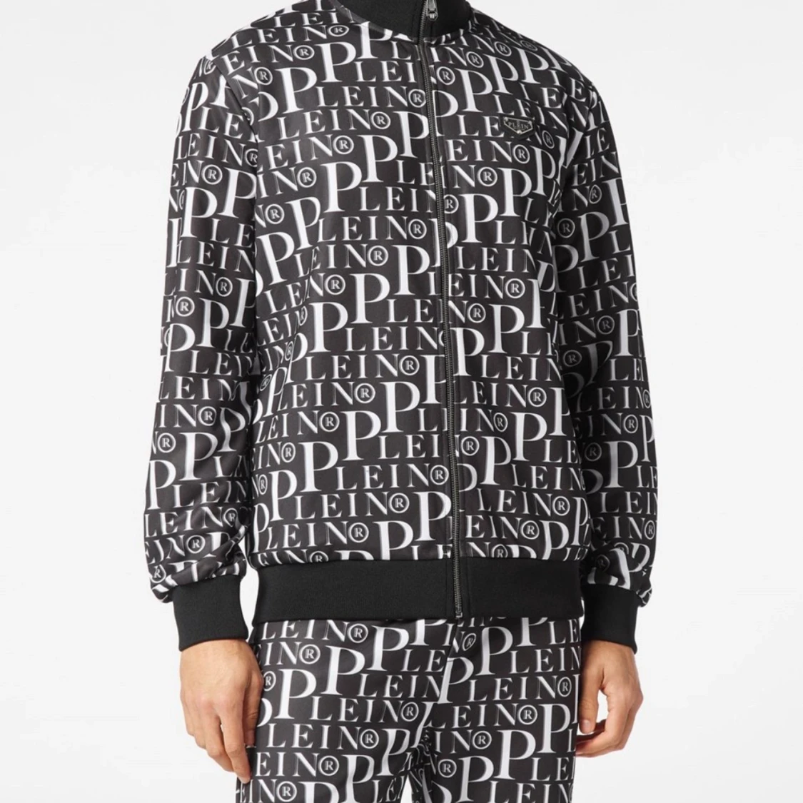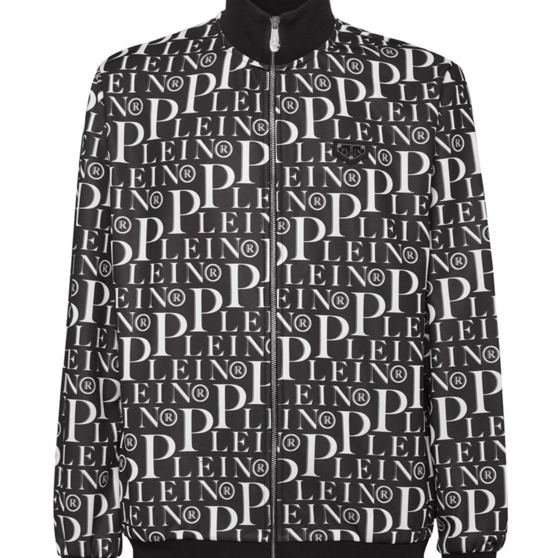 Säljer en snygg svartvit bomberjacka från phillip Plein med ett coolt all-over print av märkesnamnet. Jackan har en dragkedja framtill och ribbade muddar vid ärmslut och nederkant. Perfekt för att sticka ut på festen eller bara chilla i vardagen.