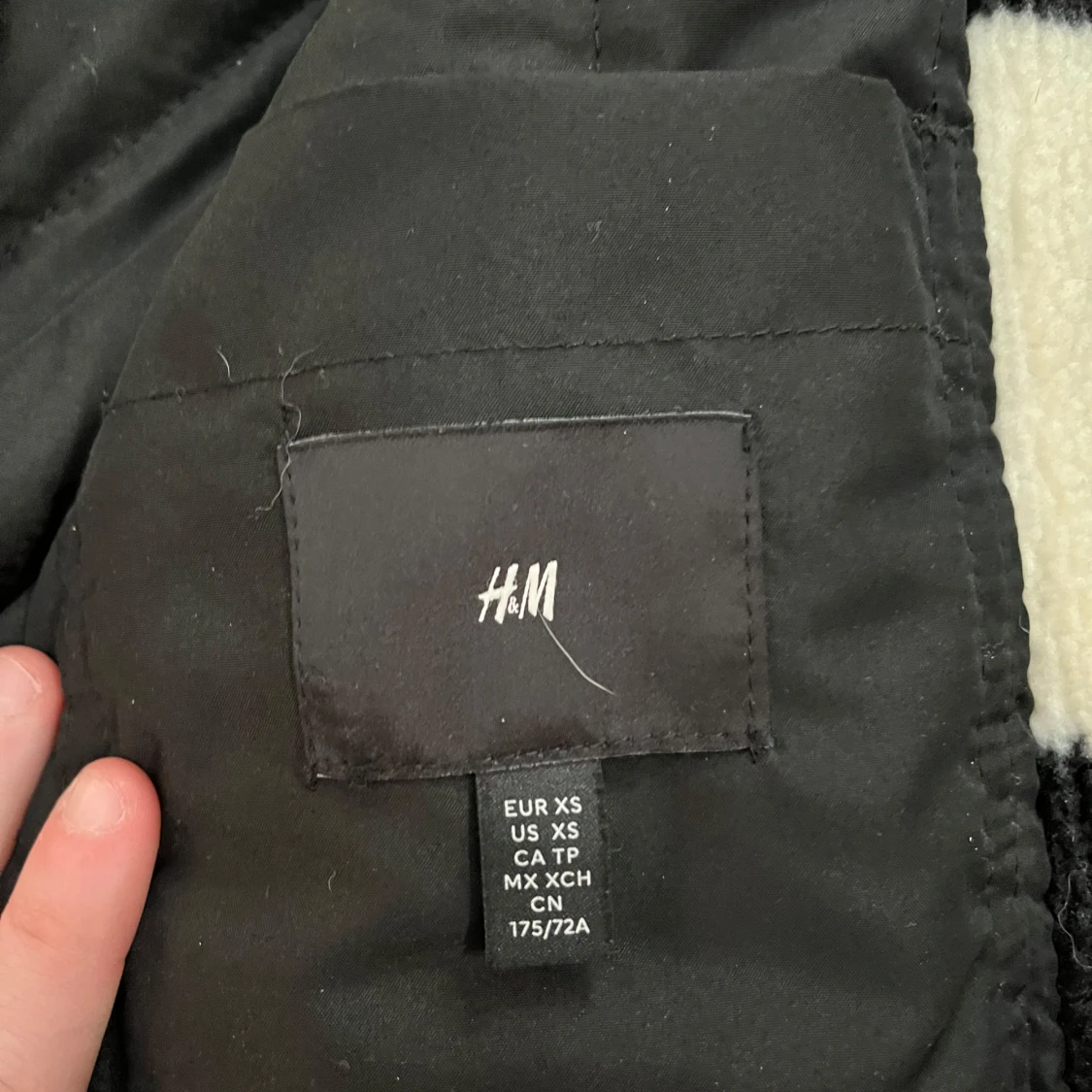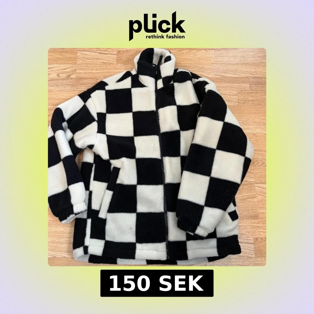 Säljer en cool svartvit fleecejacka från H&M med ett schackrutigt mönster. Jackan har dragkedja och långa ärmar, perfekt för kyliga dagar. Den är både stilren och bekväm. Säljer då den ej kommit till användning