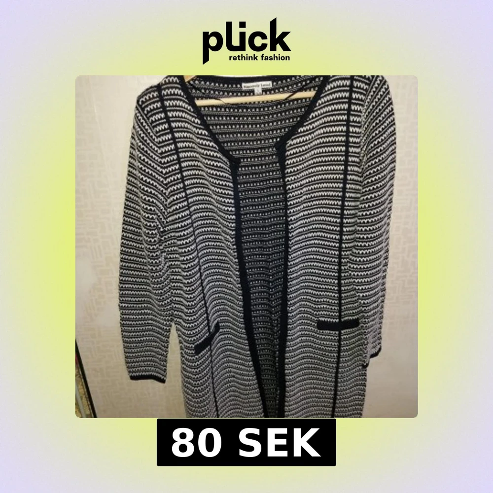Snygg svartvit kappa från Samantha Levin med ett unikt mönster. Den har långa ärmar och en öppen design utan knappar eller dragkedja. Perfekt för att ge din outfit en stilren touch.