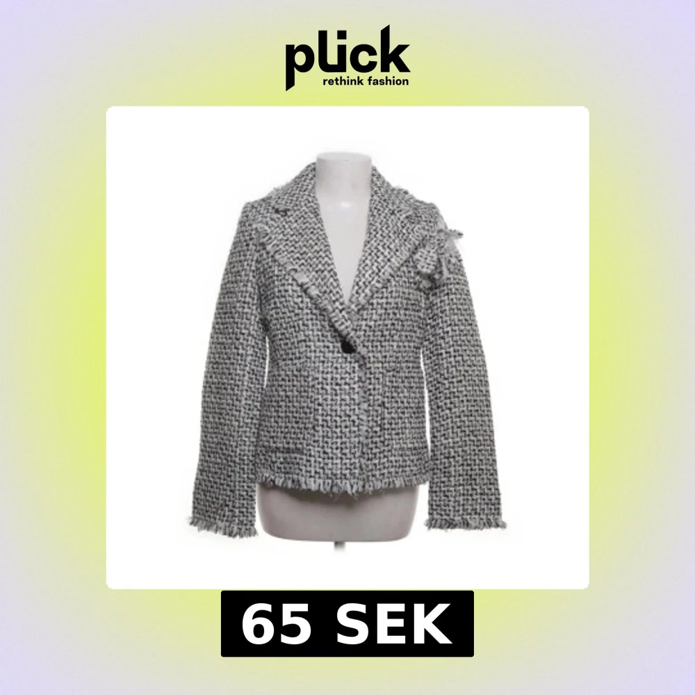 đ€Svartvit rutig kavaj, fransiga detaljer och knappar framtill đ€©Perfekt för vĂ„ren â OanvĂ€nt skick