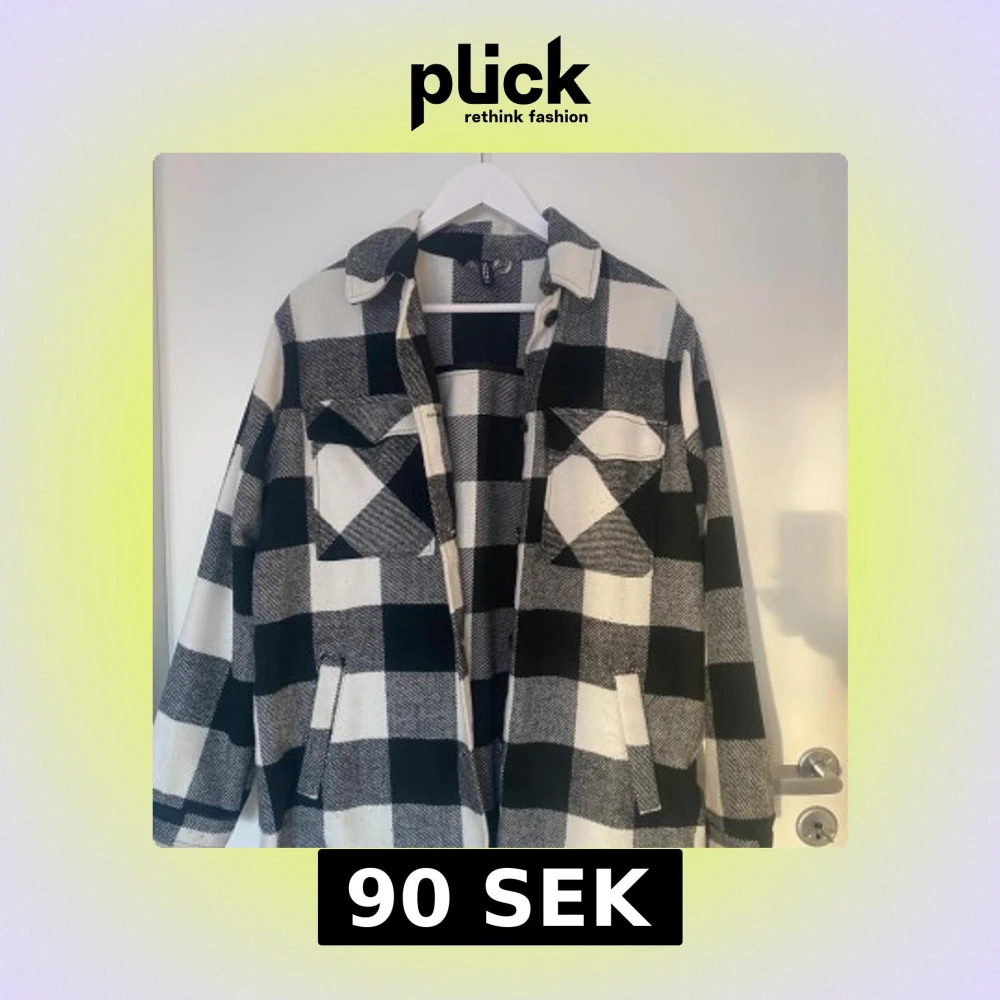 Snygg och trendig svartvit rutig overshirt från H&M. Perfekt för lager-på-lager-stil med knappar framtill och två bröstfickor. Den har en klassisk krage och långa ärmar. Den är inte så varm så skulle rekommendera till vår/höst. Kontakta för mer bilder!