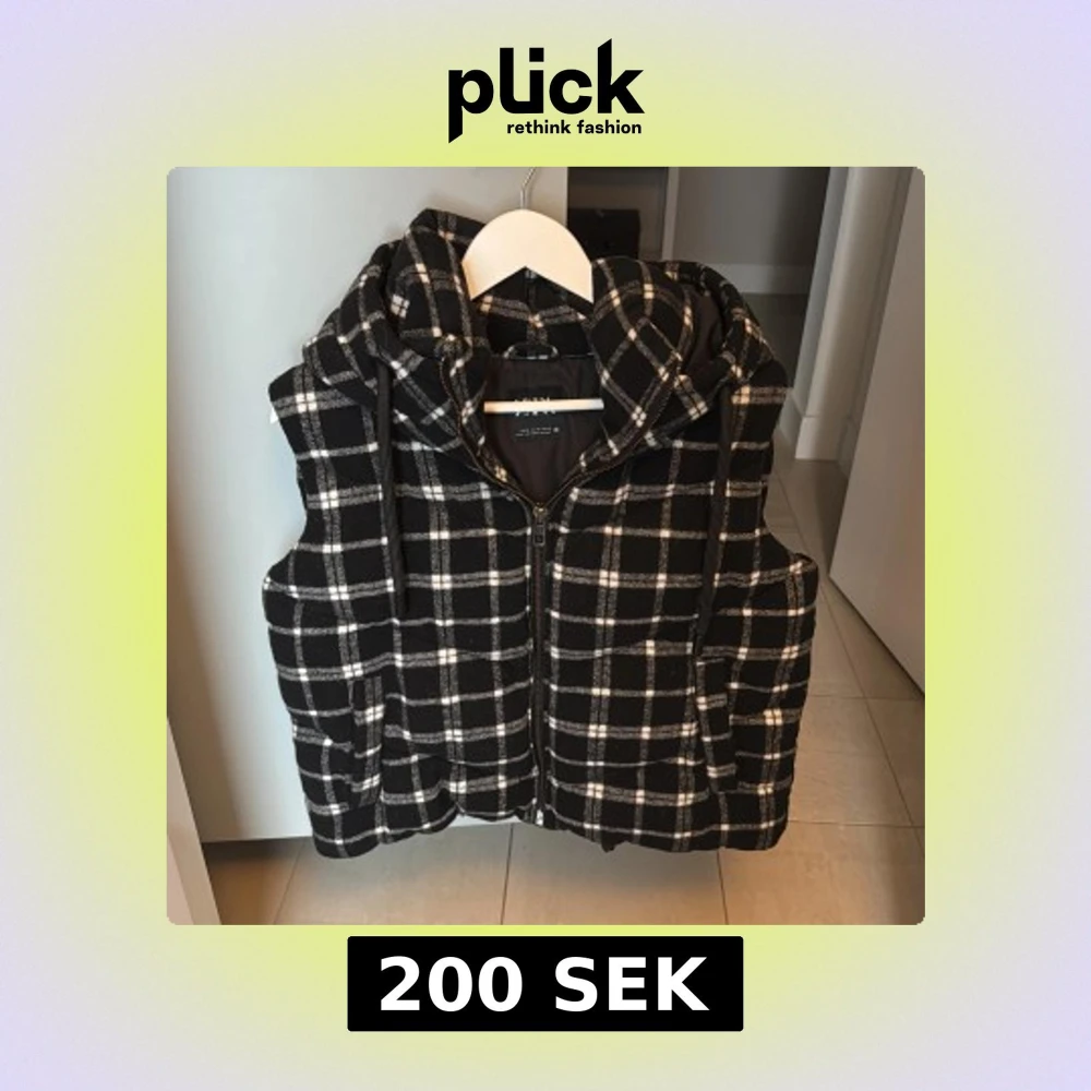 Snygg svartvit rutig väst från Zara med dragkedja och huva. Perfekt för lager-på-lager under kyligare dagar. Västen har en modern och stilren design som passar till många olika outfits.