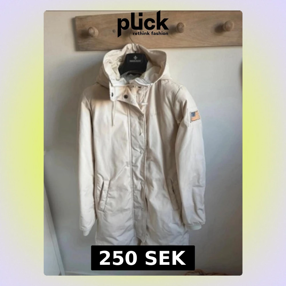 Säljer en Offwhite parkas från Svea med broderad amerikansk flagga på ärmen, huva med snörning och praktiska fickor. Jackan har dragkedja och knappar framtill, perfekt för kalla dagar. Stilren och enkel design som funkar till många outfits.