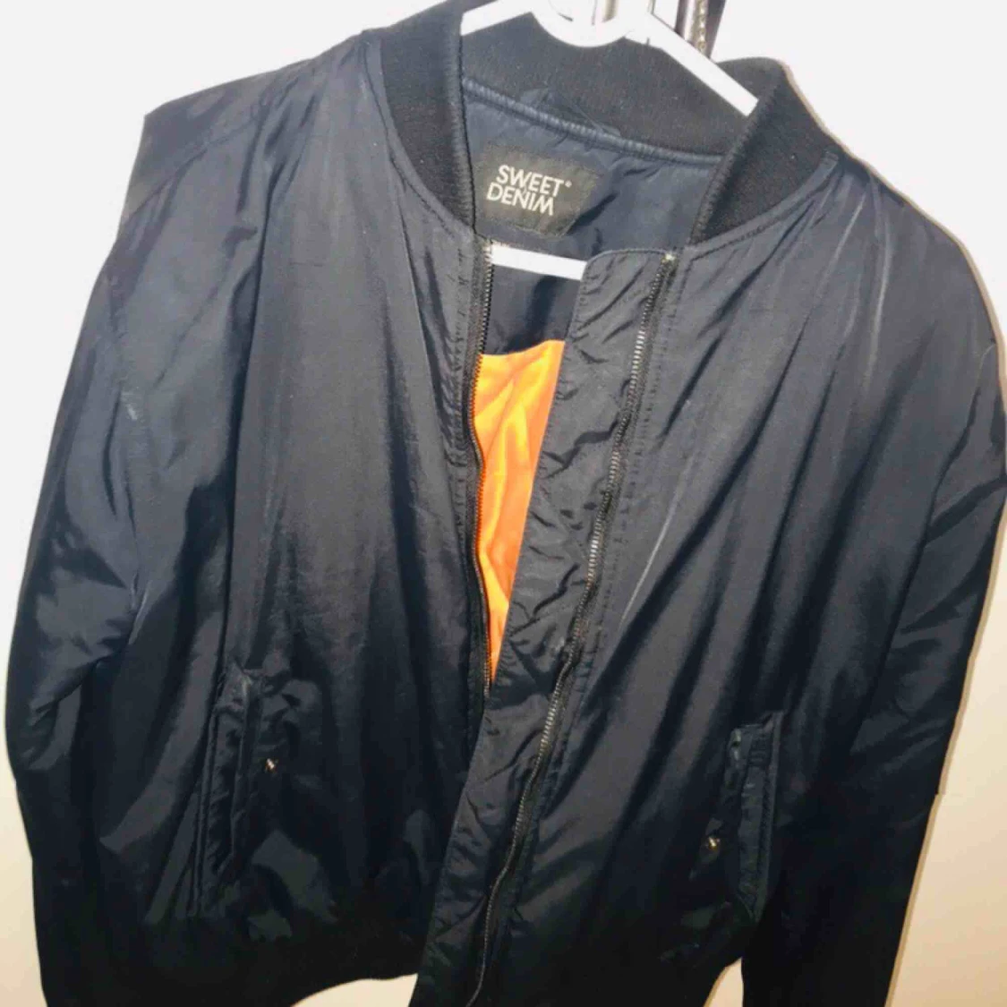 Svart bomberjacka med orange insida, från Sweet Denim. Kostar ca 400 nypris Köpare står för frakt