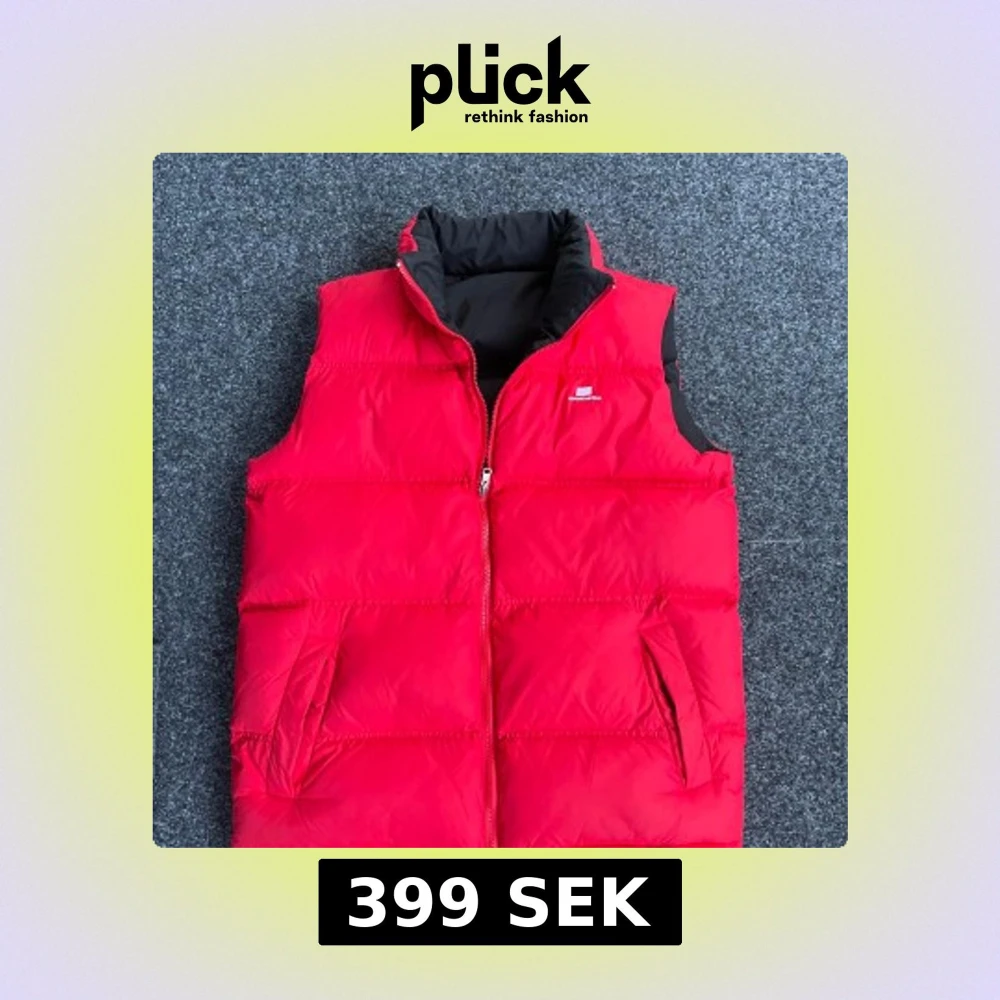 Riktigt schysst dunväst som går att bära åt båda håll då den är vändbar. Jättebra skick! Strl M med sitter mer som en L