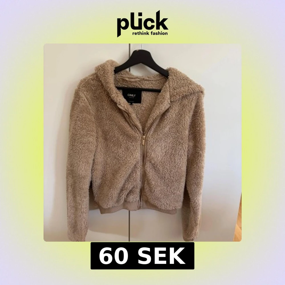 Supermjuk och fluffig teddyjacka från ONLY i beige färg. Jackan har huva, dragkedja framtill och ribbade muddar vid ärmslut och nederkant. 💘
