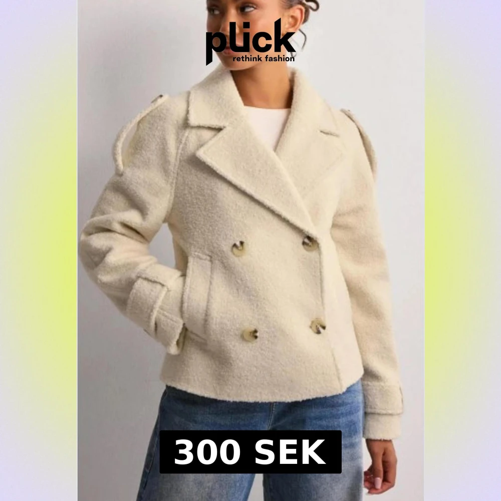 Säljer en snygg teddy jacka/kappa med dubbelknäppning och stora silvriga knappar. Jackan har hög krage, axelklaffar och är tillverkad i ett mjukt, strukturerat material som ger en cool vibe. Perfekt att styla med jeans för en clean look.