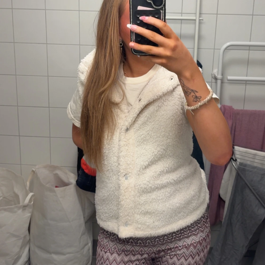 Skit mysig teddy väst jag köpte på plick, i fint skick. Strl L men passar mig som har S ändå om man inte vill ha den super tajt 🥰