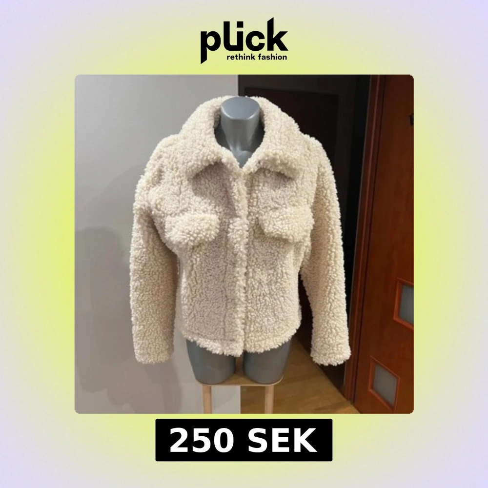 Mysig beige teddyjacka med långa ärmar och en klassisk krage. Jackan har en fluffig textur och stängs med knappar framtill. Perfekt vår jacka! 😍