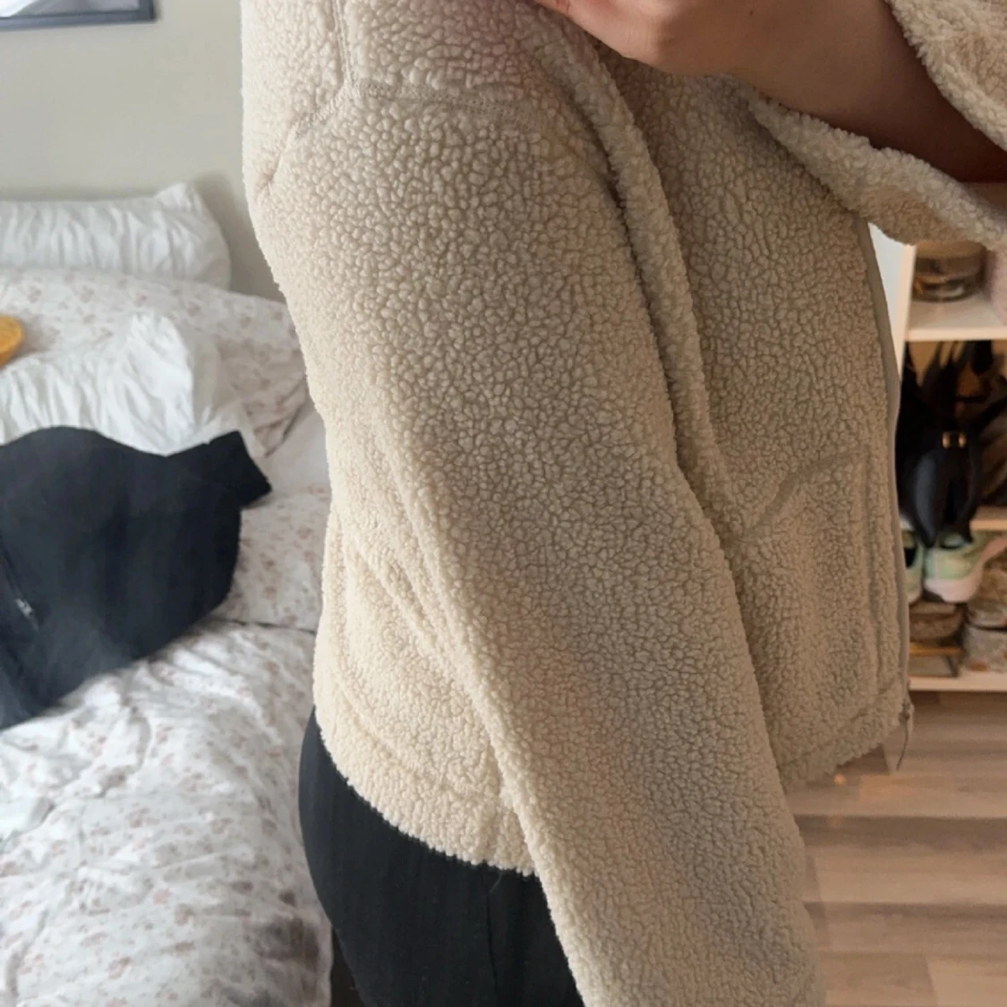 Den populära teddyjackan från hm i storlek M men sitter om en S/M som e perfekt nu till hösten, knappt använd och skriv vid minsta fundering om några frågor eller så❣️