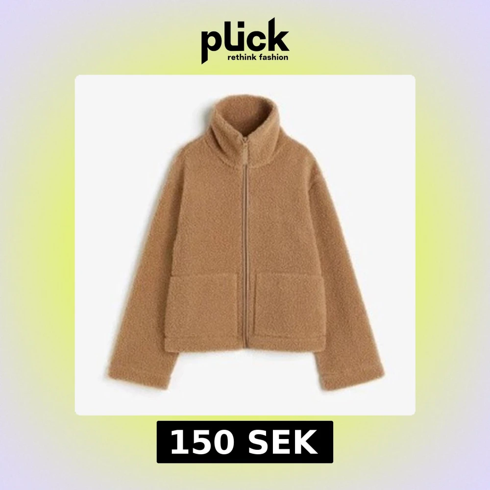 Mysig beige teddyjacka med hög krage och två stora fickor framtill. Jackan har långärmade ärmar och stängs med dragkedja. Perfekt för kalla dagar när du vill vara både varm och snygg.