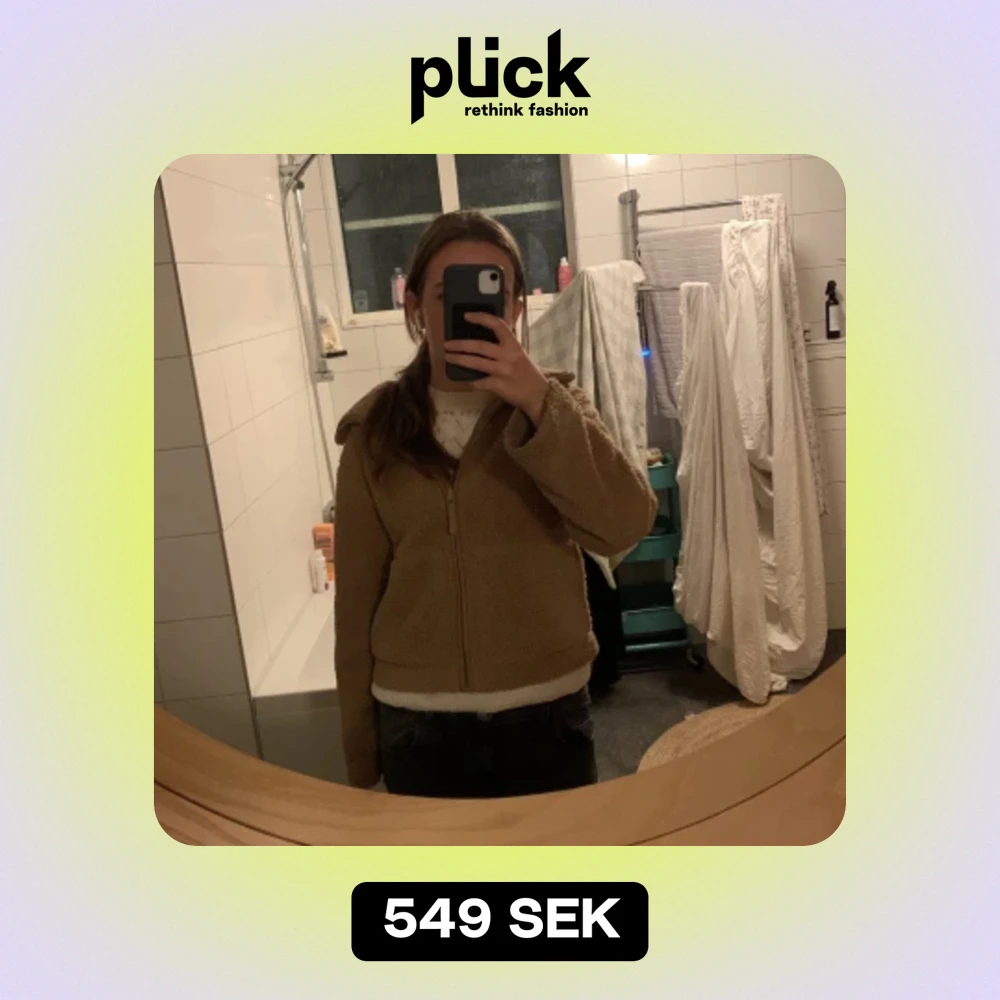 En så fin brun populär teddykofta från H&m, typ helt ny och strl. Xs💗💗 (den är inte lika orangebrunaktig i verkligheten)