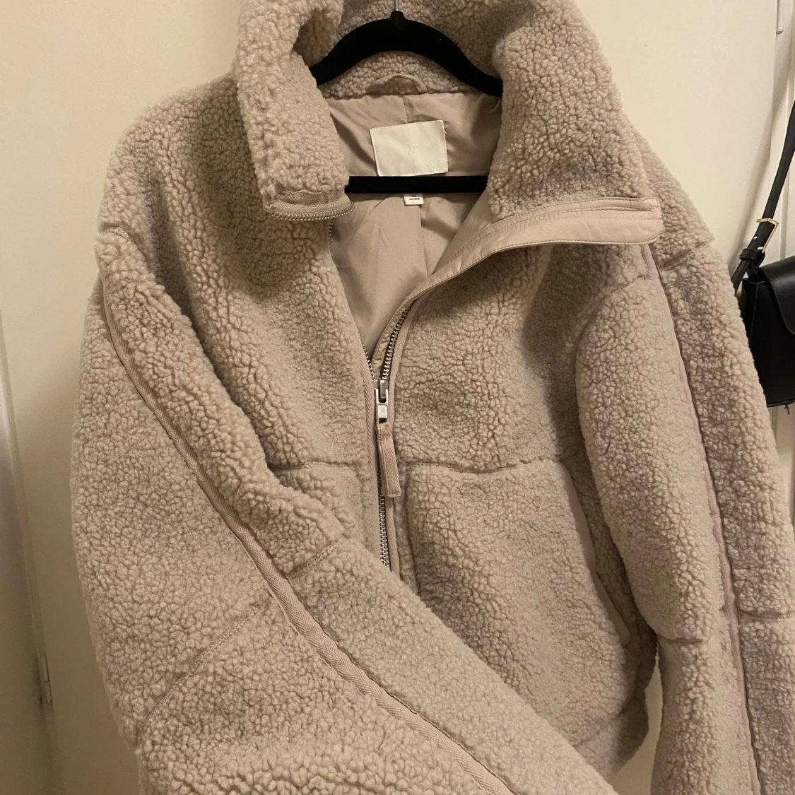 Säljer denna populära teddyjacka från HM som är slutsåld. Använd ett fåtal gånger och ser ut som ny, lika fluffig och inga tecken på användning.